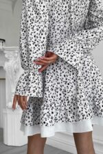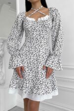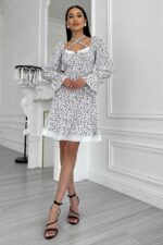 Жіноча Біла Сукня Міні Льода з Легкої Тканини в Квітковий Принт Прикрашена Воланами по Спідниці та Ліфу