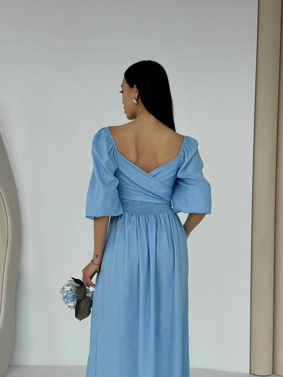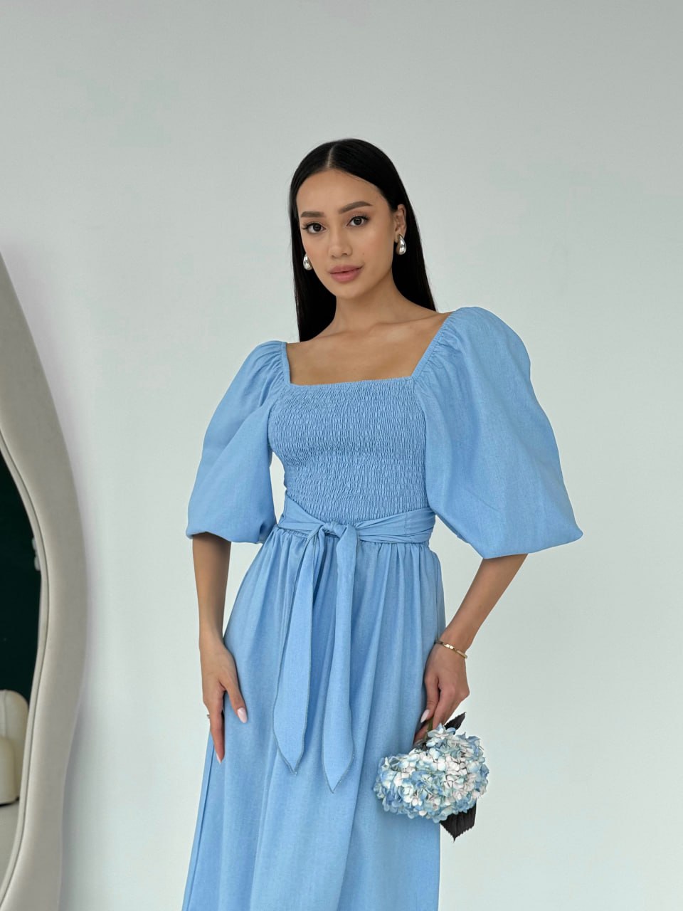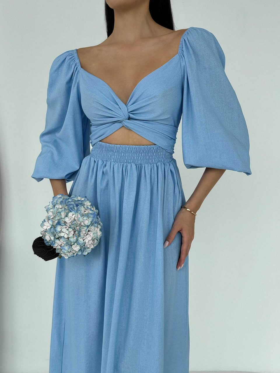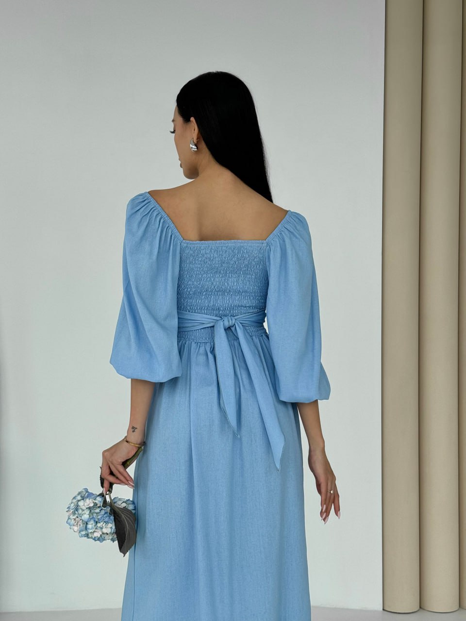 Жіноча Лляна Блакитна Сукня-Трансформер Асканія Максі – Довга з Пишними Рукавами