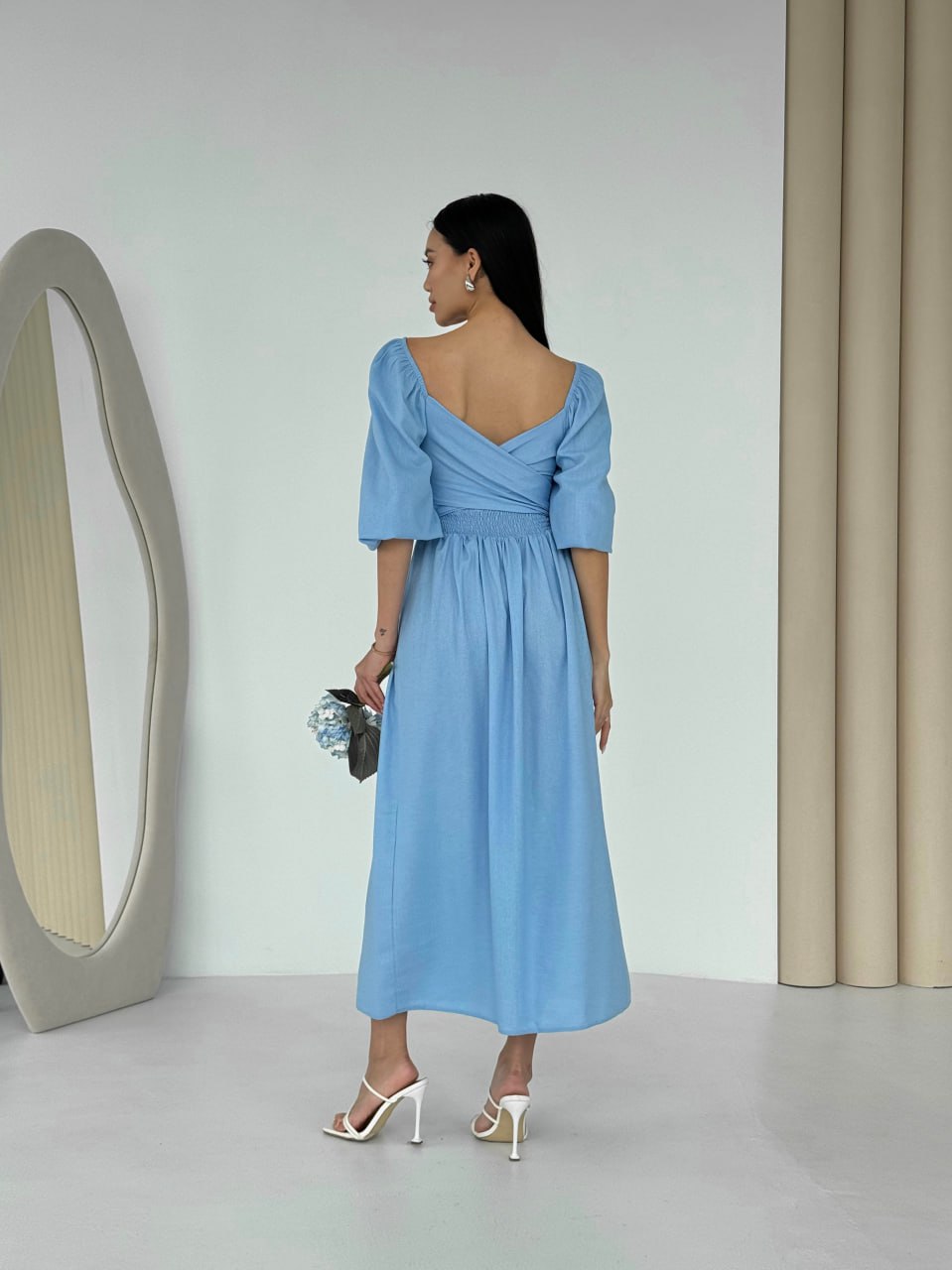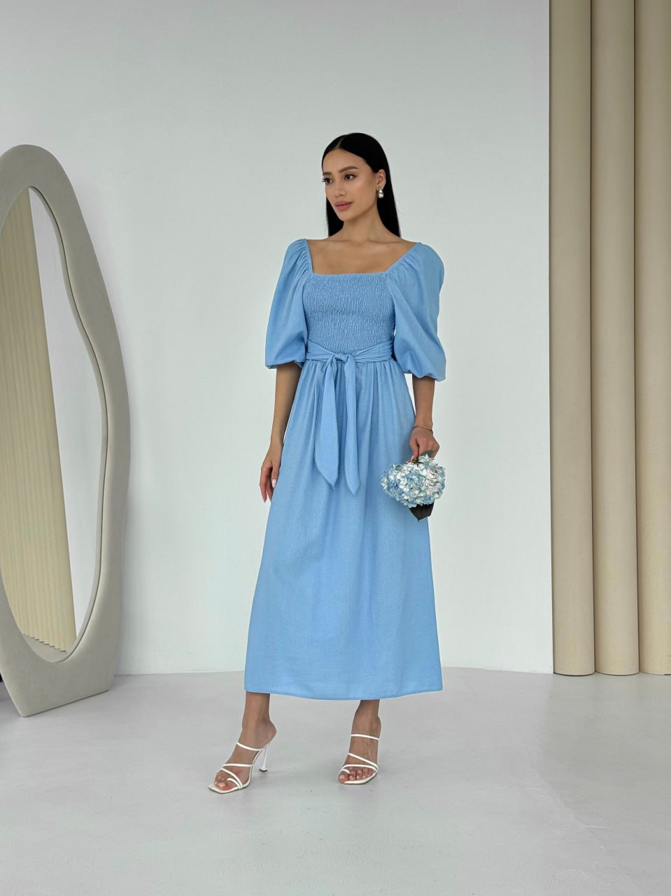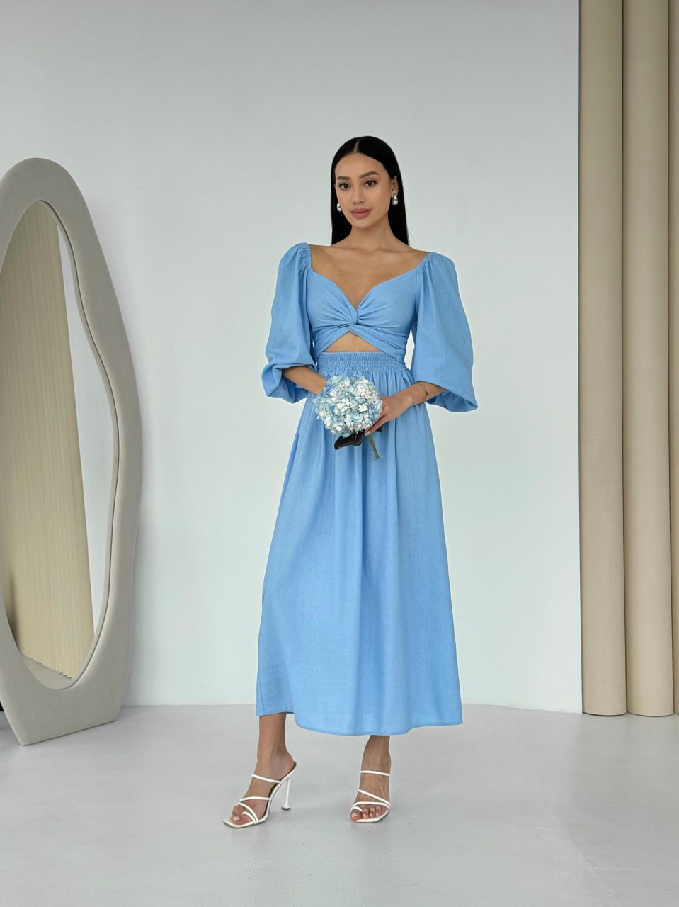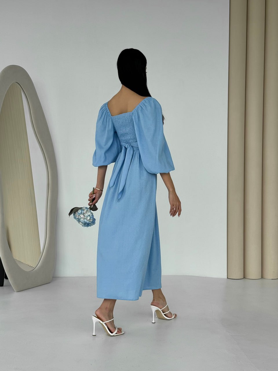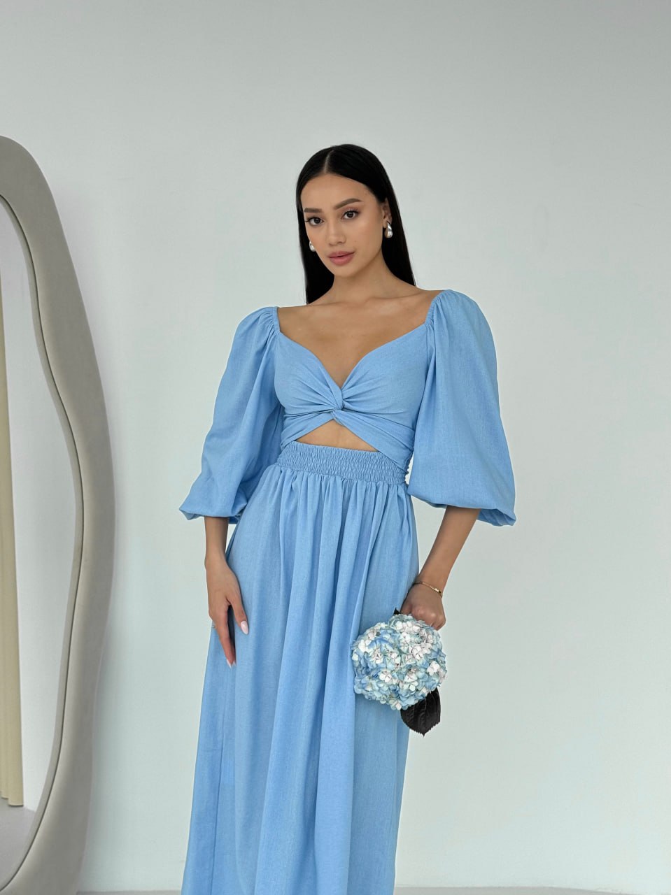 Жіноча Лляна Блакитна Сукня-Трансформер Асканія Максі – Довга з Пишними Рукавами