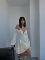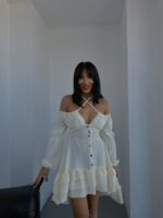 Будьте першим, хто залишив відгук “Жіноча Легка Біла Сукня Міні на Ґудзиках з Рюшами та Зав’язкою на Шиї”“ Скасувати коментар