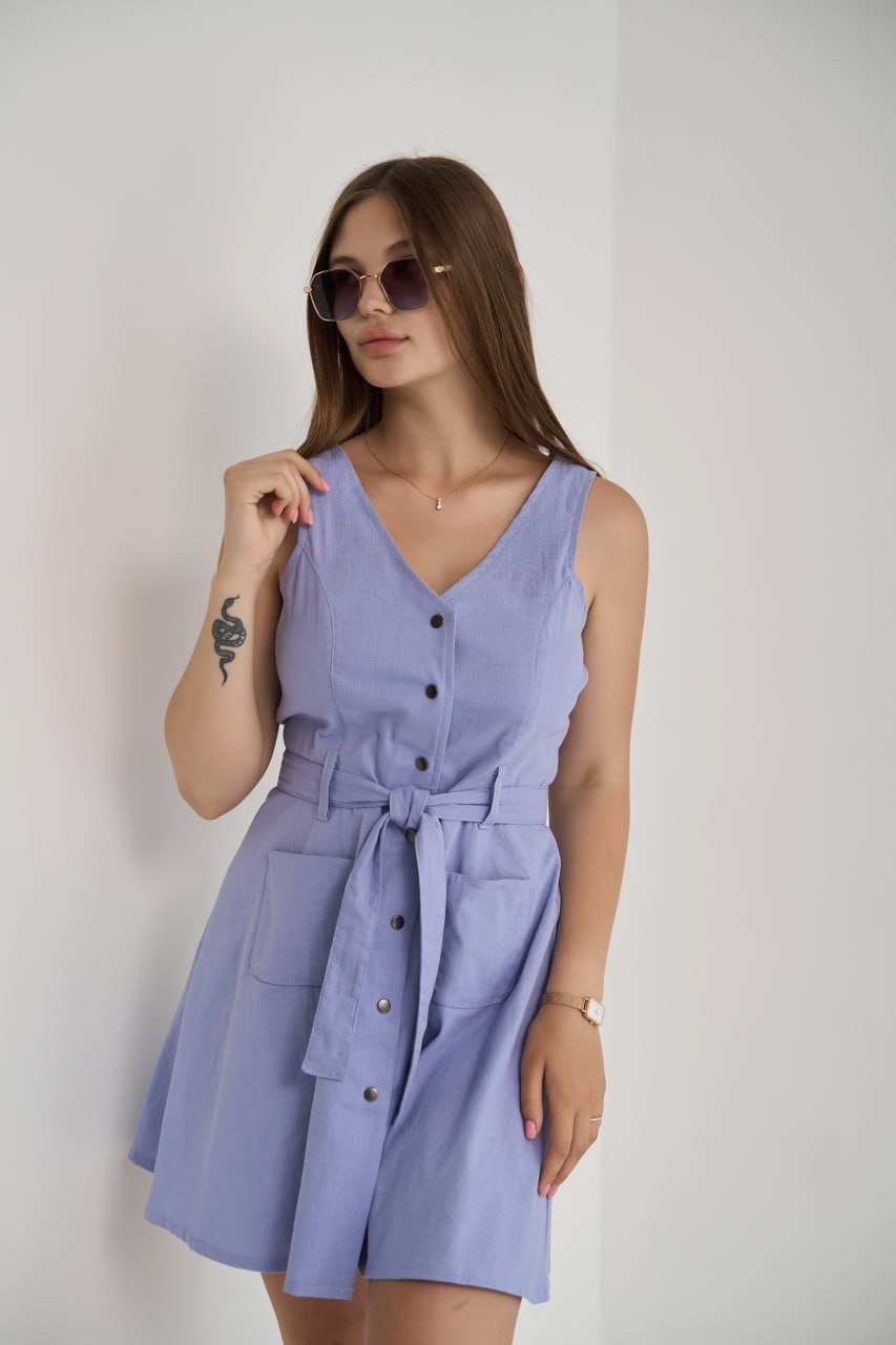 Жіноча Літня Лілова Сукня Міні – Короткий Сарафан на Кнопках з Поясом