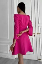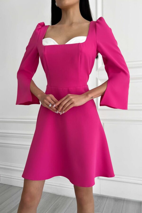 Жіноча Малинова Сукня Міні Мальва – Приталена з Фігурною Горловиною та Рукавами з Розрізами