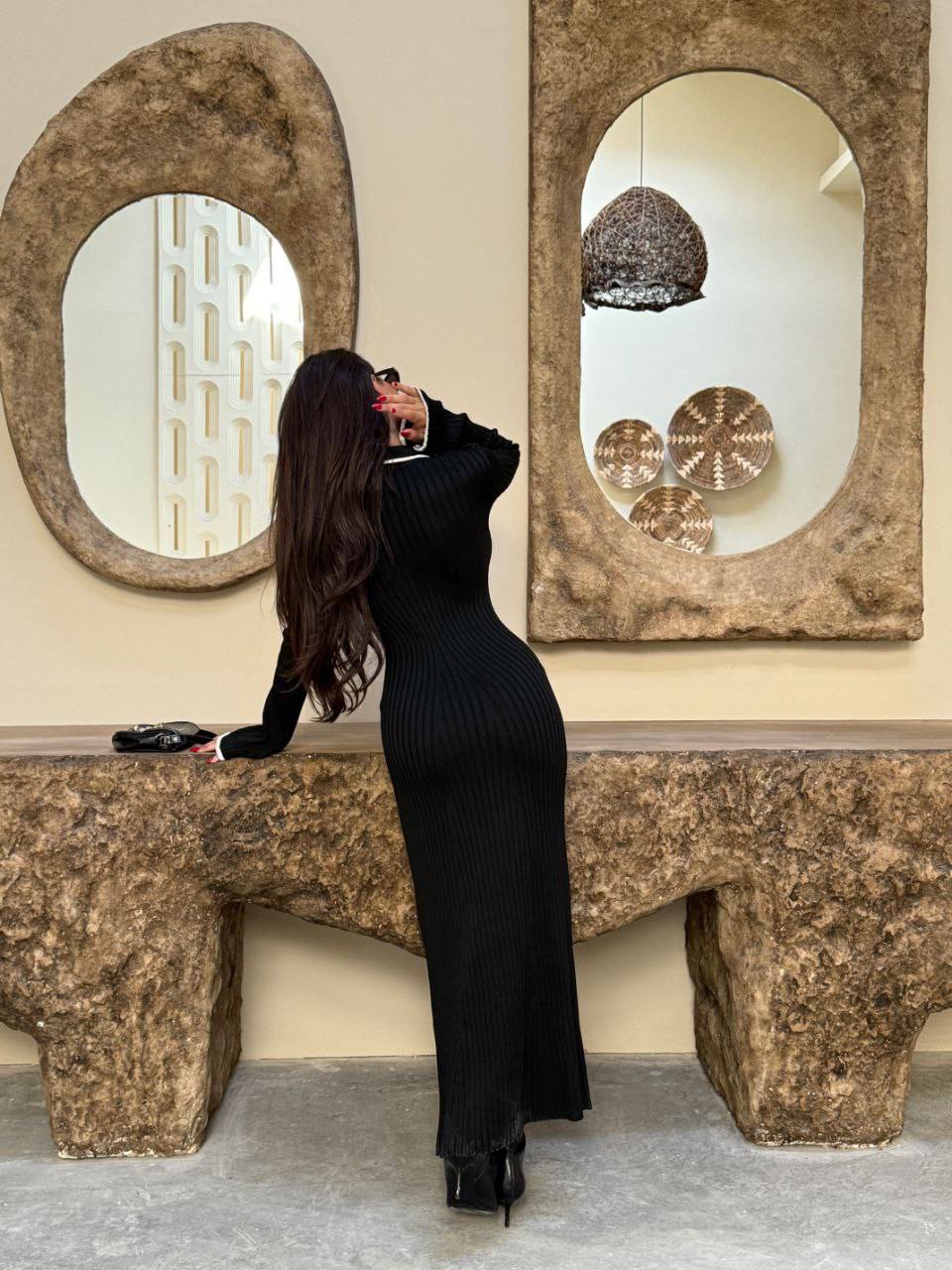 Жіноча Приталена Трикотажна Чорна Сукня з Окантовкою та Коміром Поло на Ґудзиках