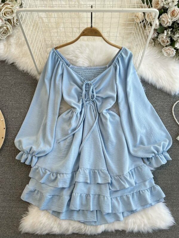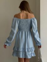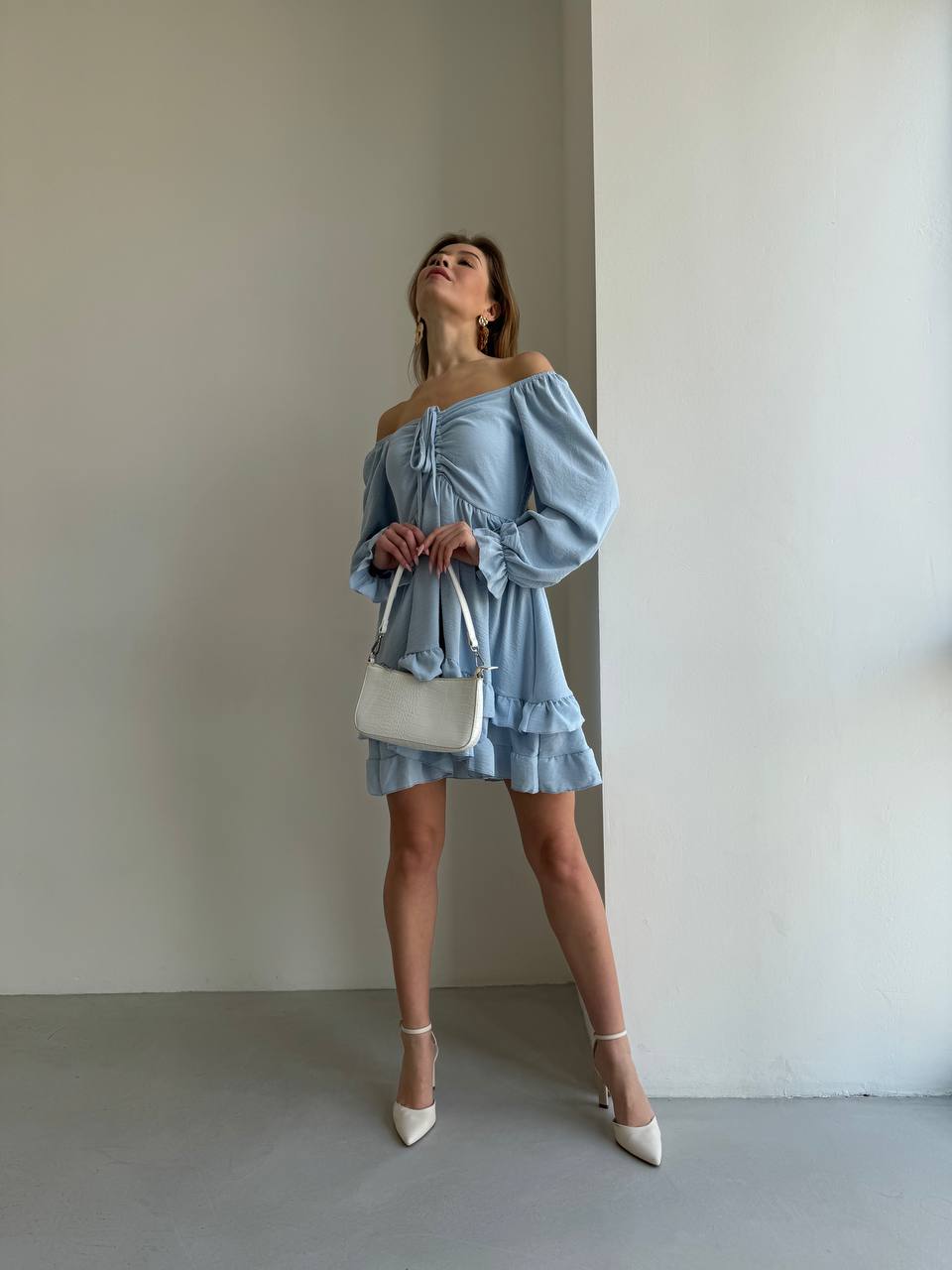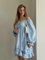Жіноча Літня Блакитна Сукня Міні з Рюшами та Пишними Рукавами