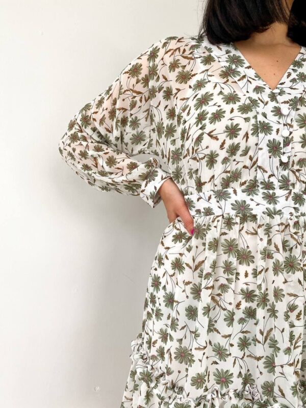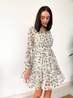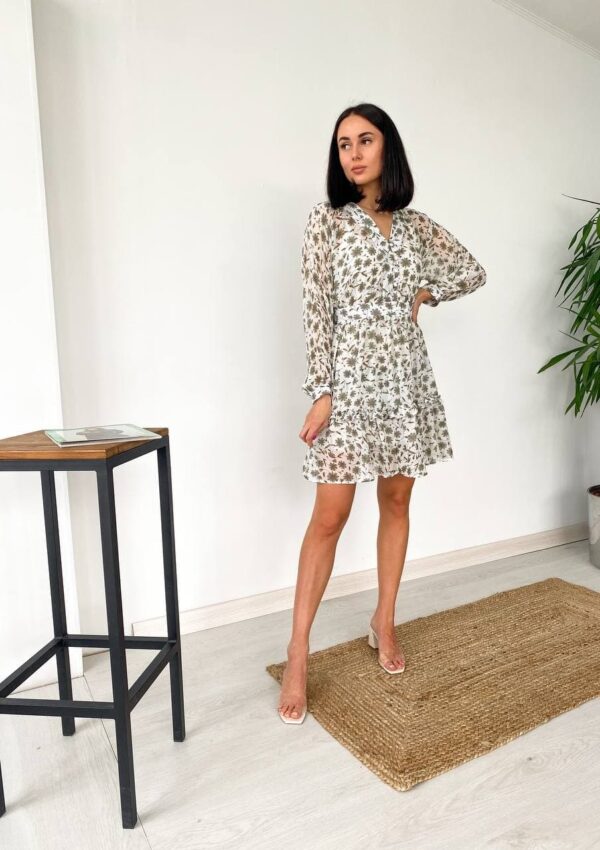 Жіноча Шифонова Біла Сукня Міні – Легка з Рюшами та Квітковим Принтом