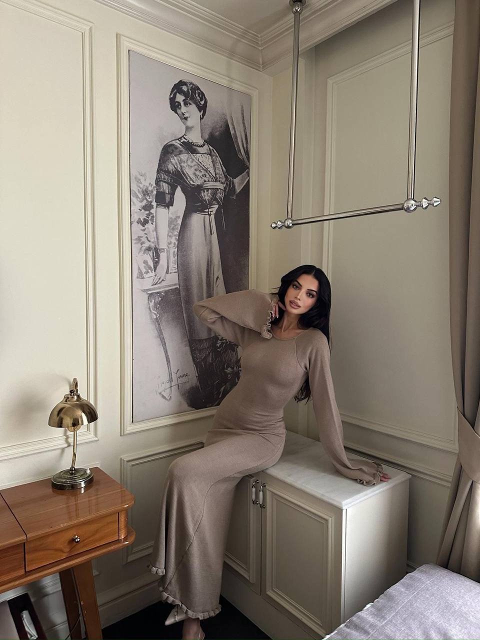 Жіноча Темно-Бежева Сукня Максі – Трикотажна з Довгими Руками і Відкритою Спиною