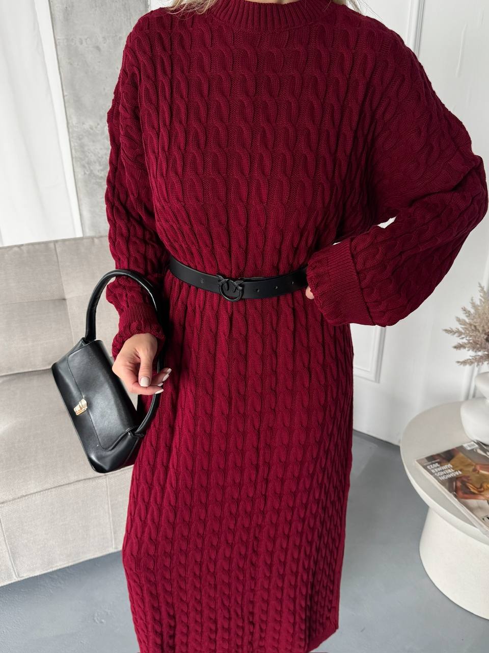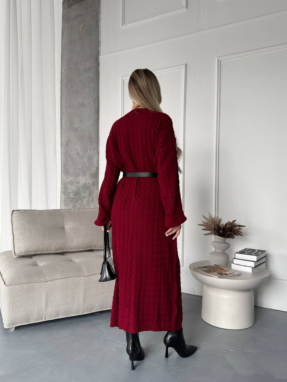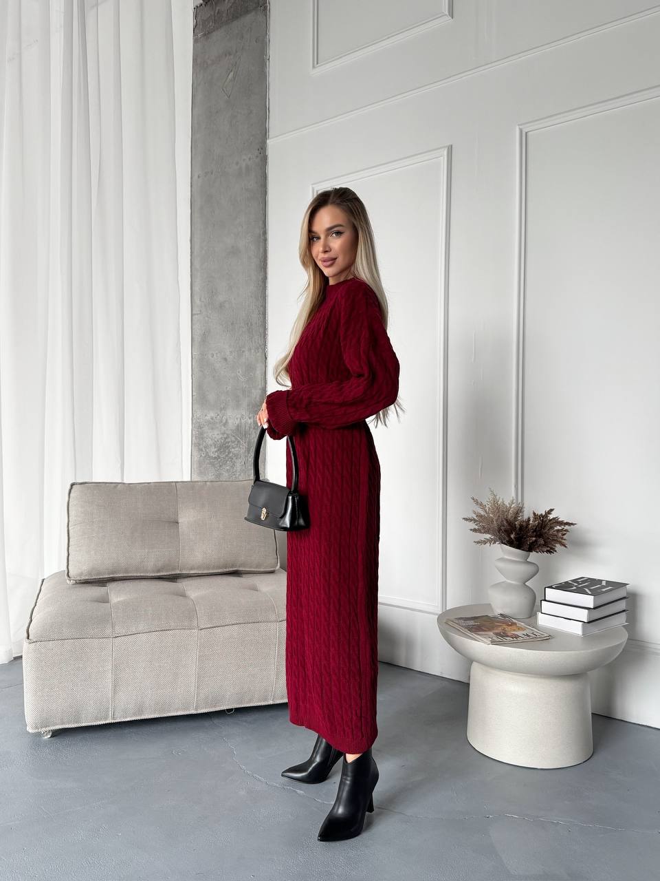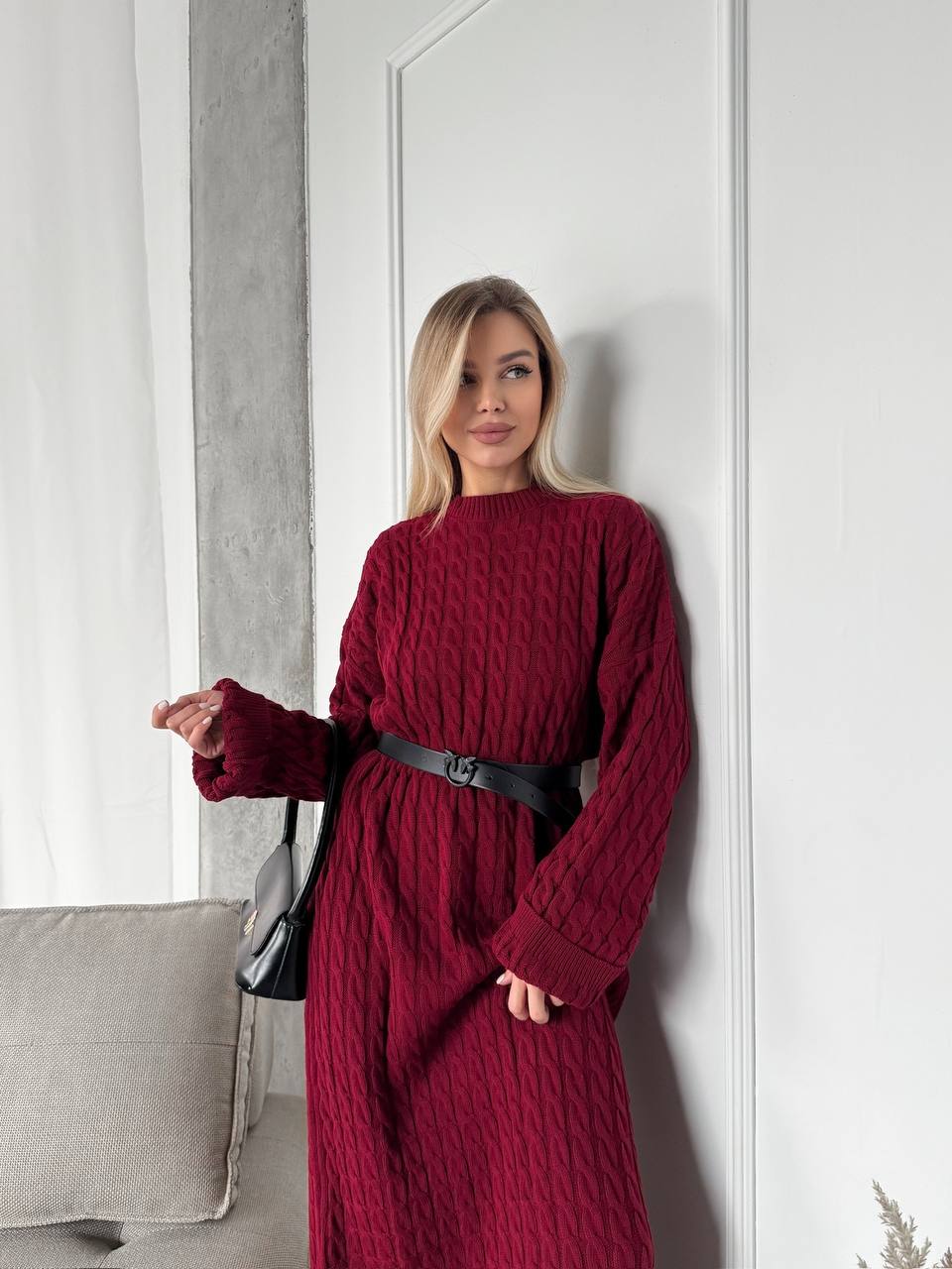 Жіноча Тепла Довга Бордова Сукня Вільного Крою з Фактурним Візерунком Косичка