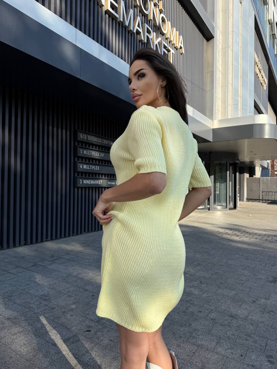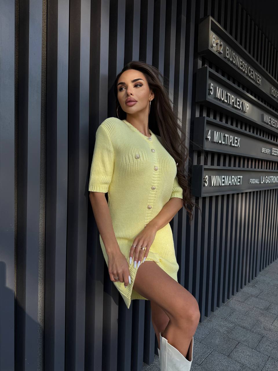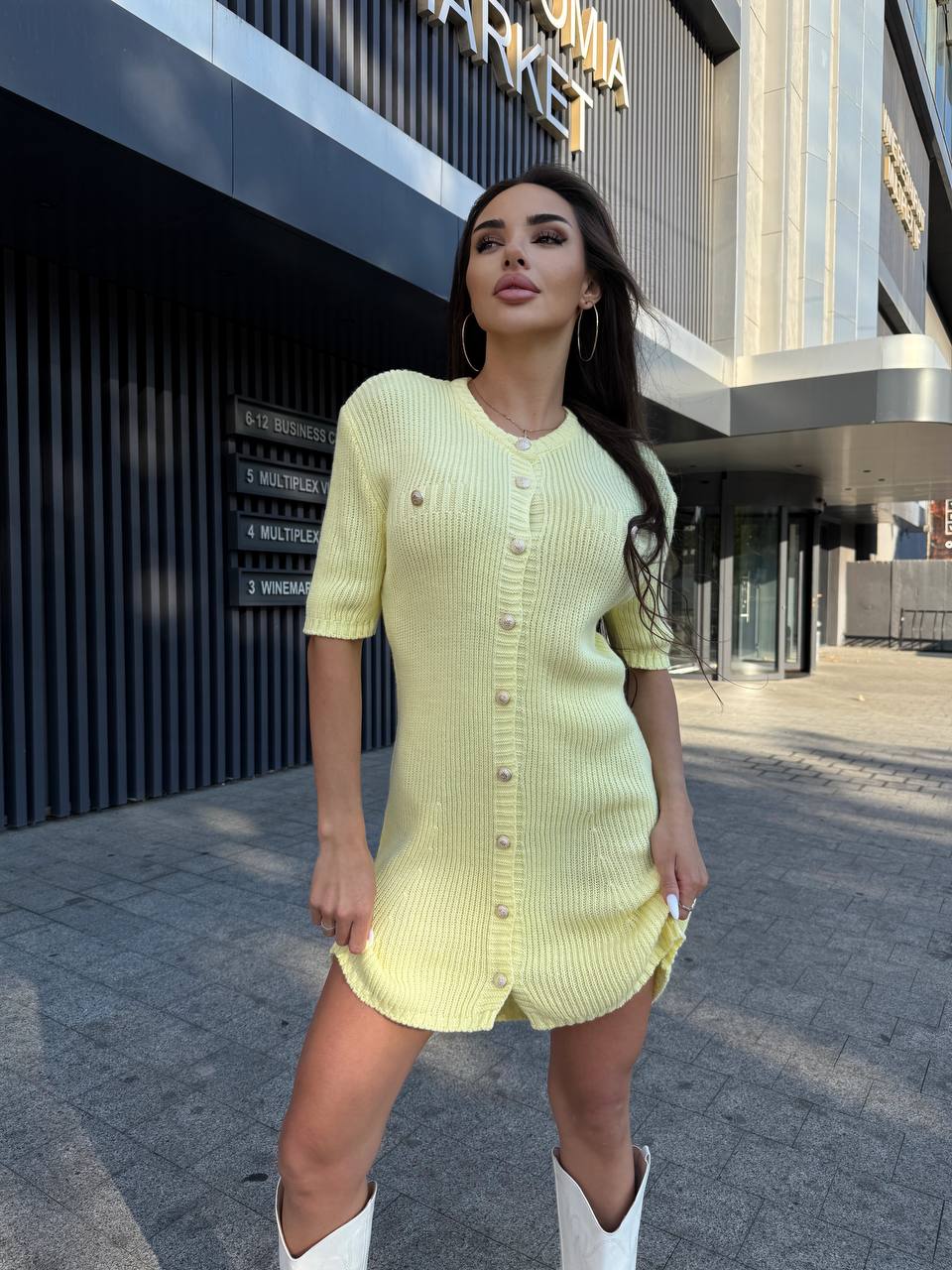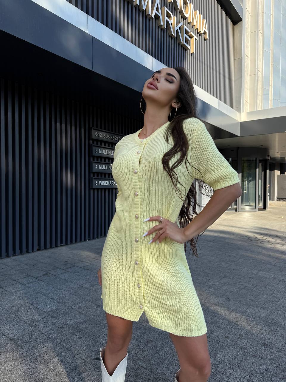 Жіноча Трикотажна Жовта Сукня Міні на Ґудзиках з Короткими Рукавами