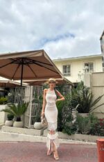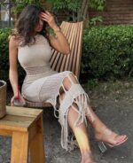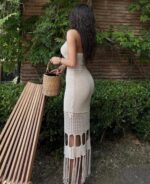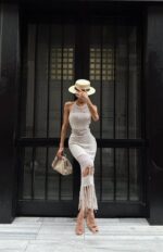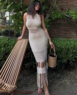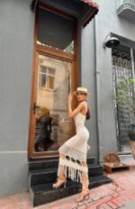 Жіноче В’язане Літнє Молочне Сукня з Вирізами та Бахромою