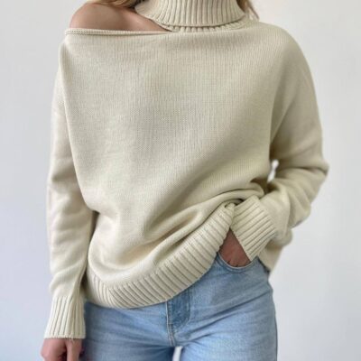 Жіночий Класичний Рожевий Светр Поло з Коміром на Замку та Окантовкою