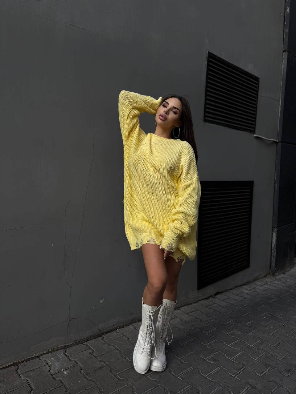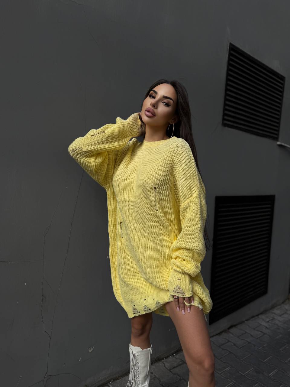 Жіночий Подовжений В’язаний Жовтий Светр Оверсайз Рваний