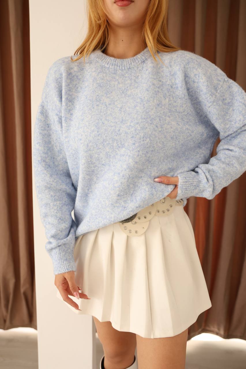 Жіночий Теплий Блакитний Светр Вільного Крою із Заниженою Лінією Плеча