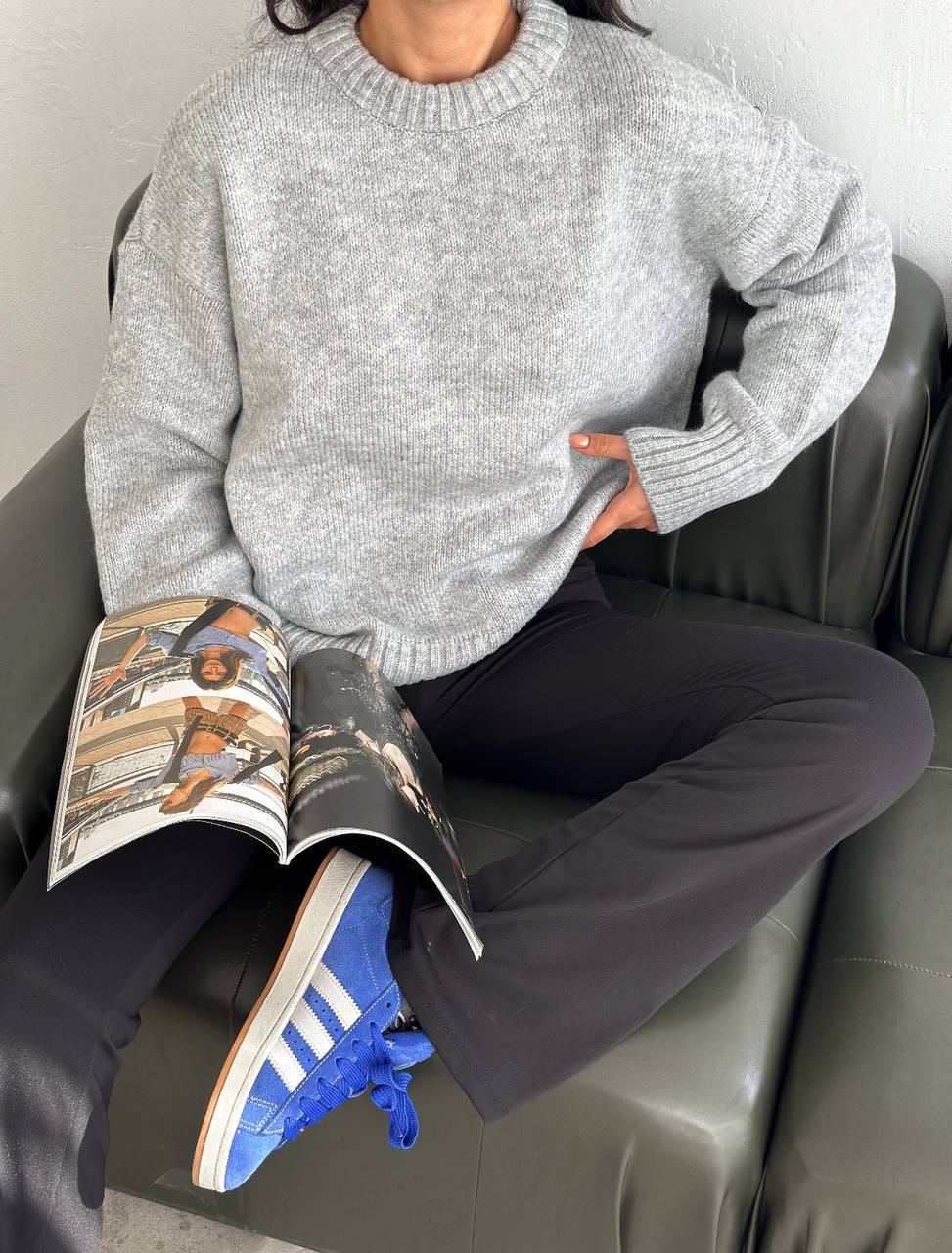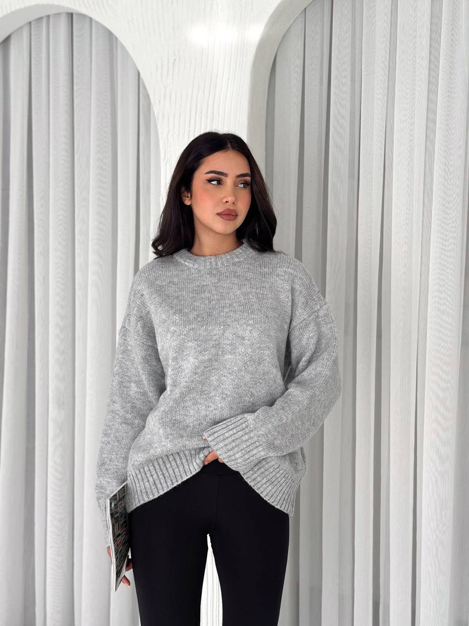 Жіночий Теплий М’який Сірий Светр Оверсайз – Трикотажний із Заниженою Лінією Плеча
