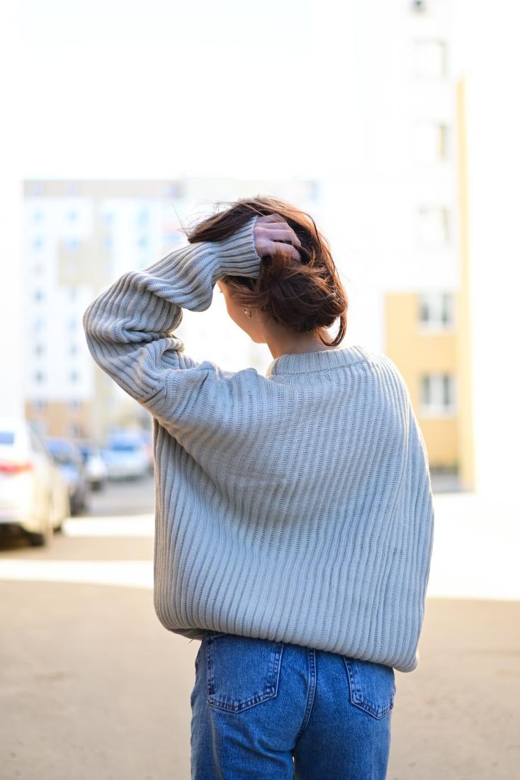 Женский Теплый Вязаный Голубой Свитер Оверсайз