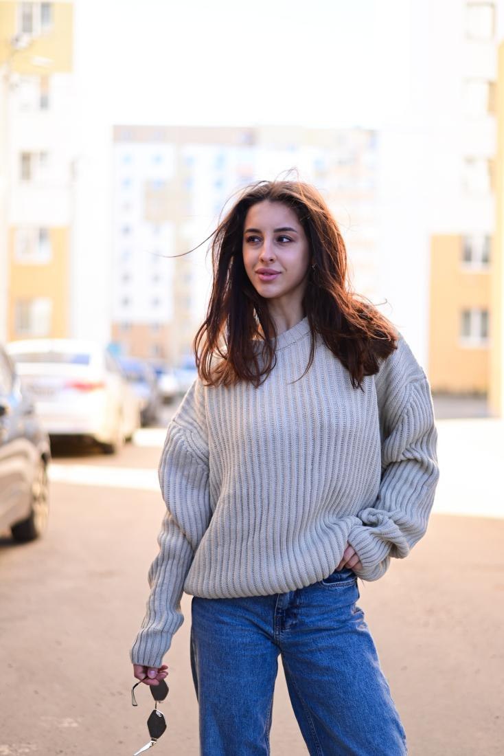 Головна Каталог Жіночий Светри Жіночий Теплий В’язаний Сірий Светр Оверсайз