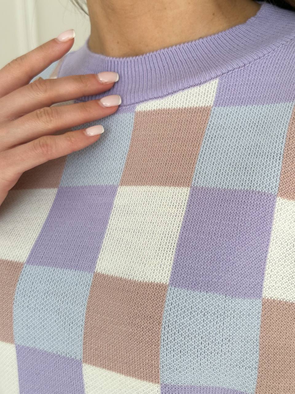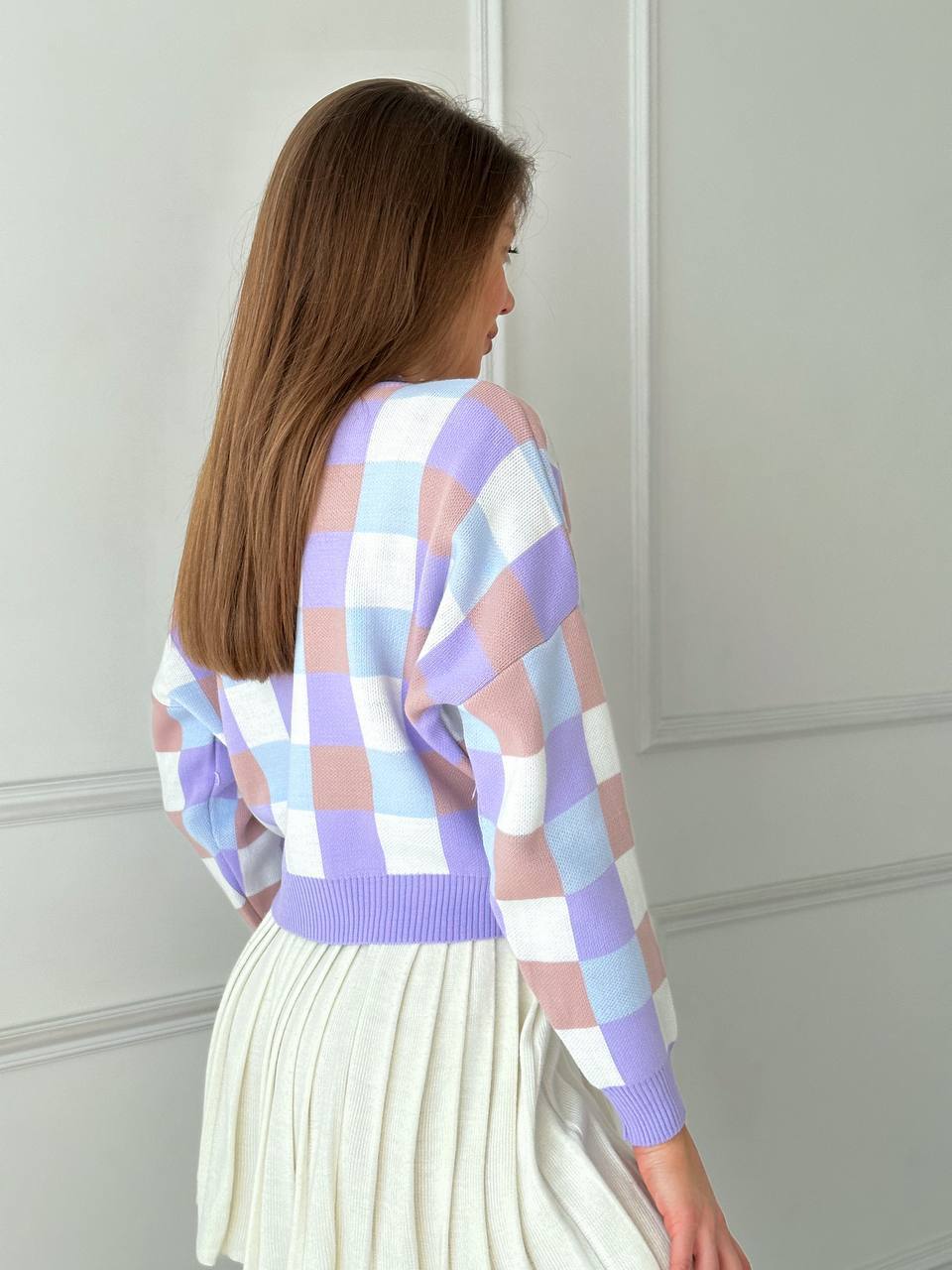 Жіночий Укорочений Фіолетовий Светр Вільного Крою в Клітинку