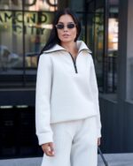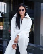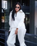 Жіночий Теплий Білий Світшот Іланда на Флісі з Чорним Замком