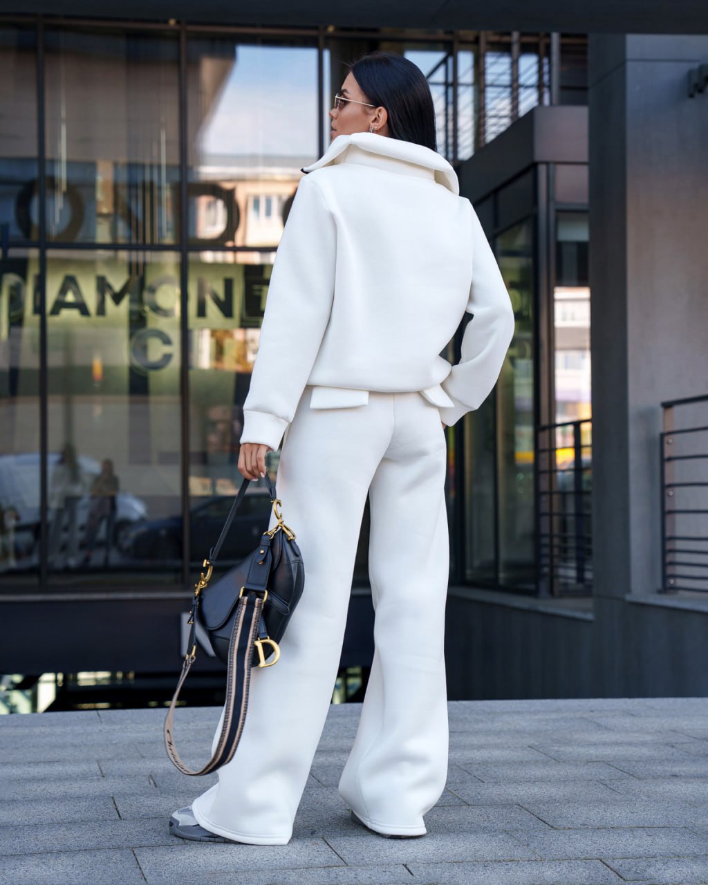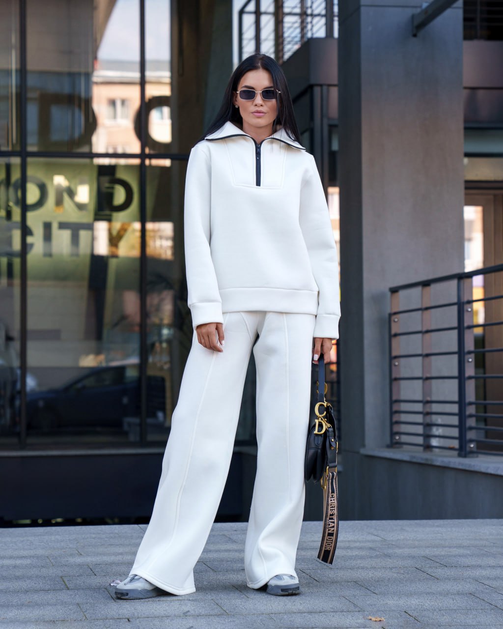 Жіночий Теплий Білий Світшот Іланда на Флісі з Чорним Замком