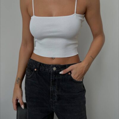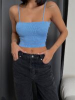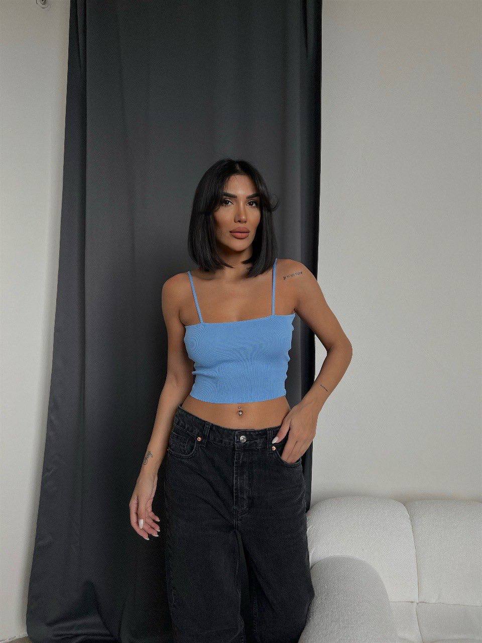 Жіночий Базовий Блакитний Топ – В’язаний на Тонких Бретелях