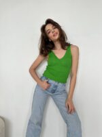 Жіночий Базовий Зелений Топ з Глибоким V-Образним Вирізом
