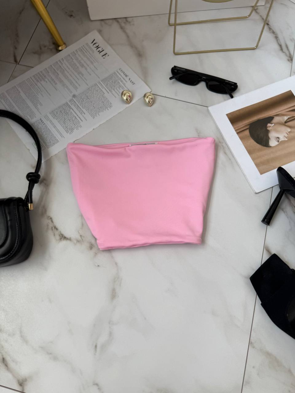 Женский Летний Розовый Топ Бандо с Открытыми Плечами
