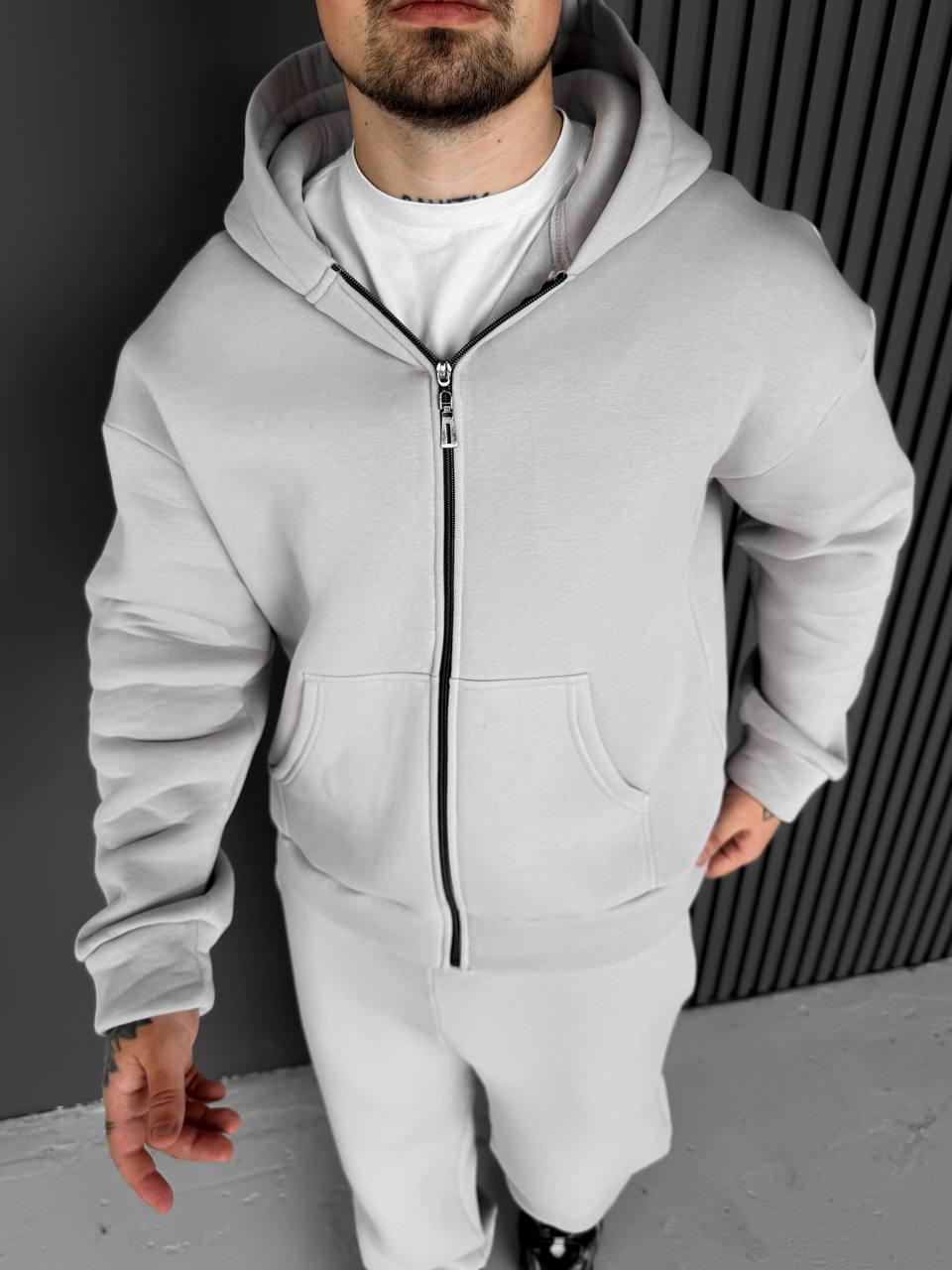 Чоловіче Тепле Сіре Зіп Худі з Начосом – Кофта Зіпка на Блискавці з Капюшоном