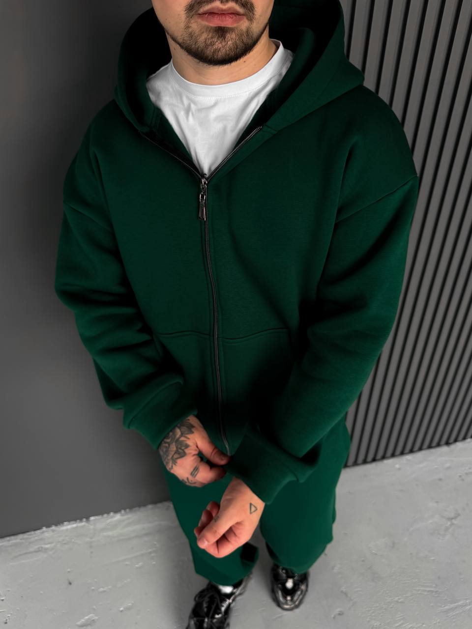 Чоловіче Тепле Зелене Зіп Худі з Начосом – Кофта Зіпка на Блискавці з Капюшоном