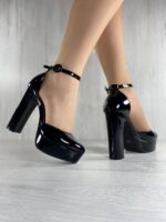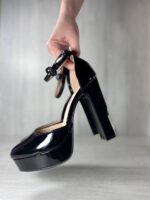 Жіночі Чорні Туфлі Еколак на Високому Каблуці