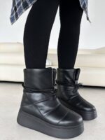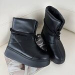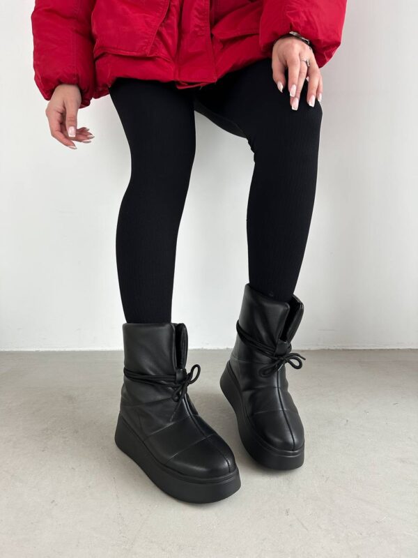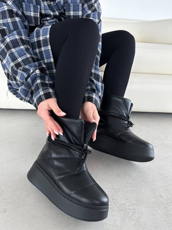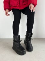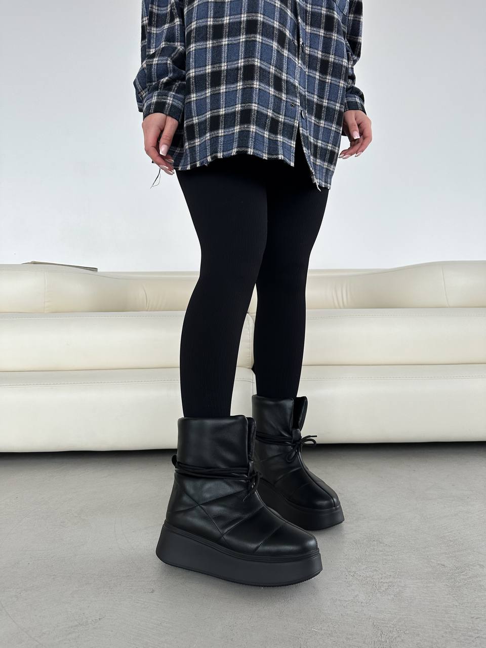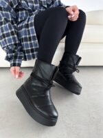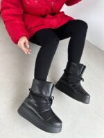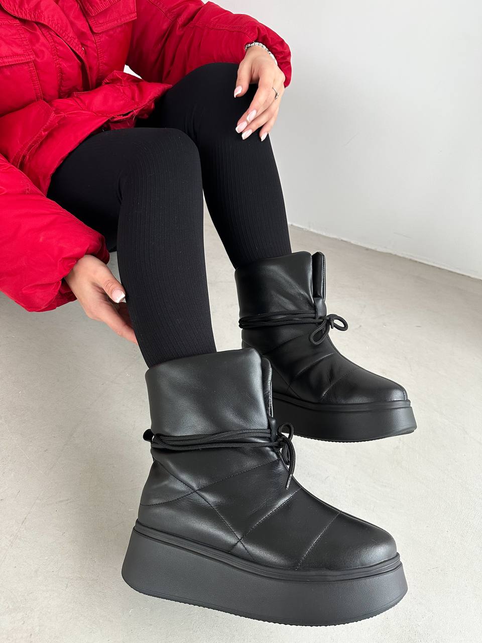 Жіночі Шкіряні Чорні Чоботи Дутики на Хутрі
