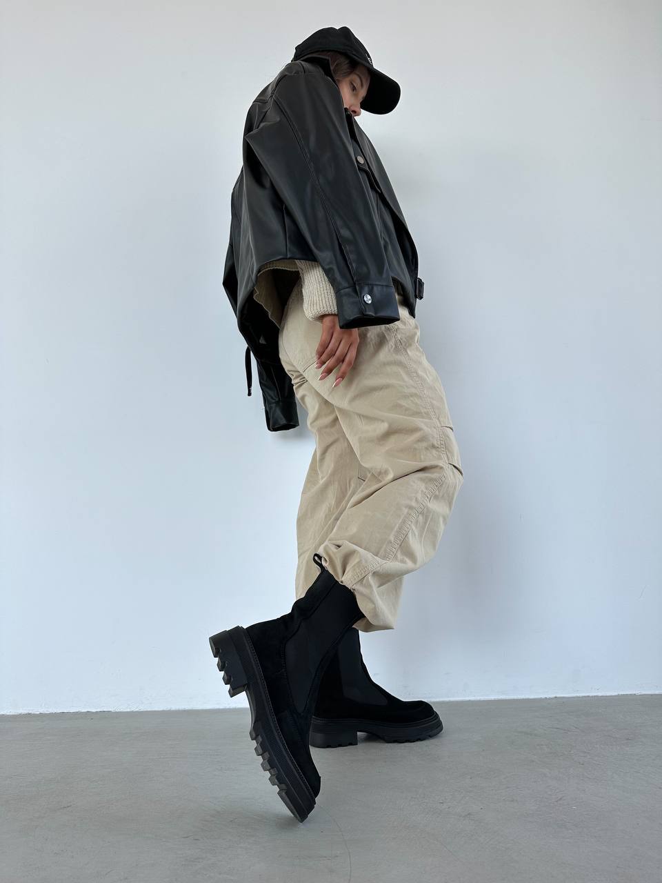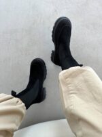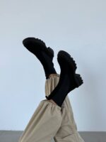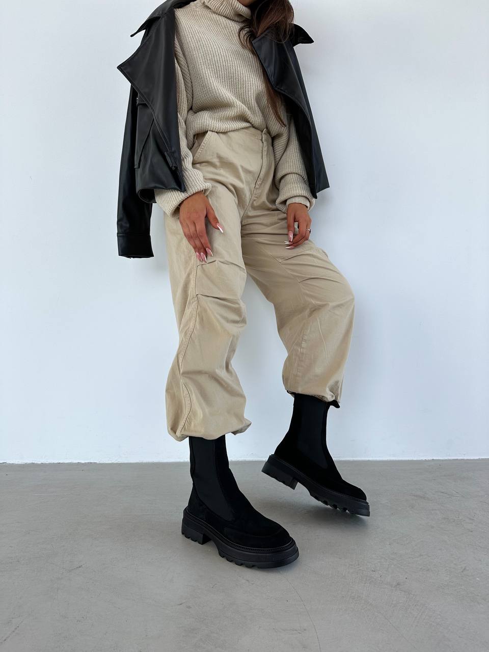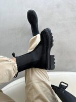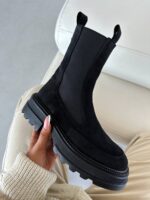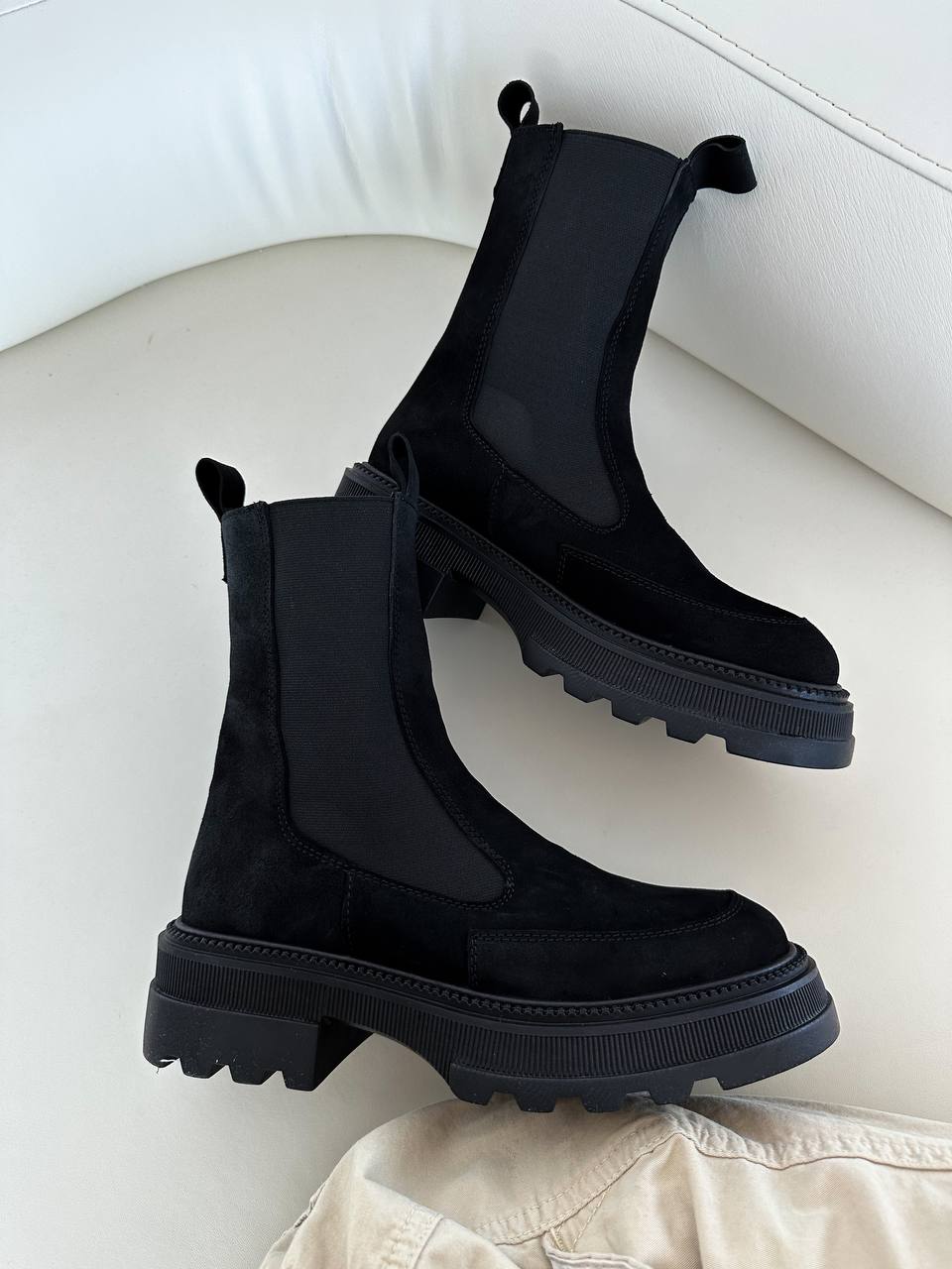 Жіночі Замшеві Зимові Чорні Черевики Челсі на Хутрі з Гумкою по Боках