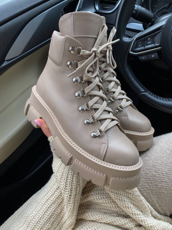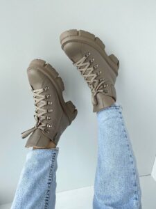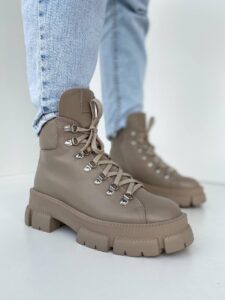Жіночі Зимові Черевики Капучіно з Натуральної Шкіри з Хутром