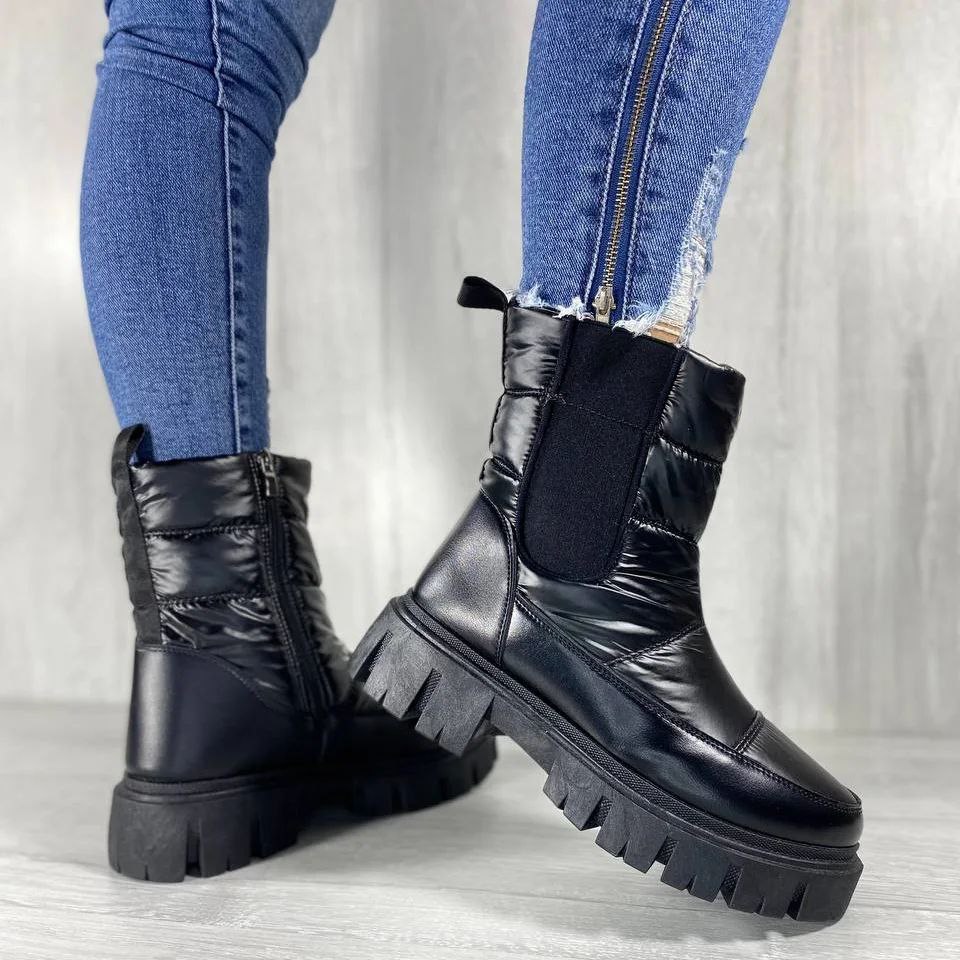 Жіночі Зимові Чорні Черевики з Натуральної Екозамші Плащові з Хутром
