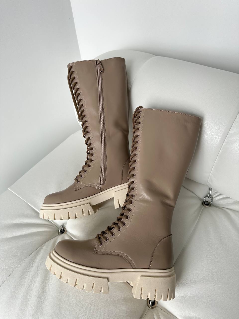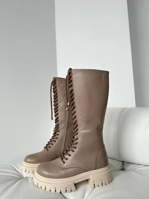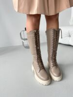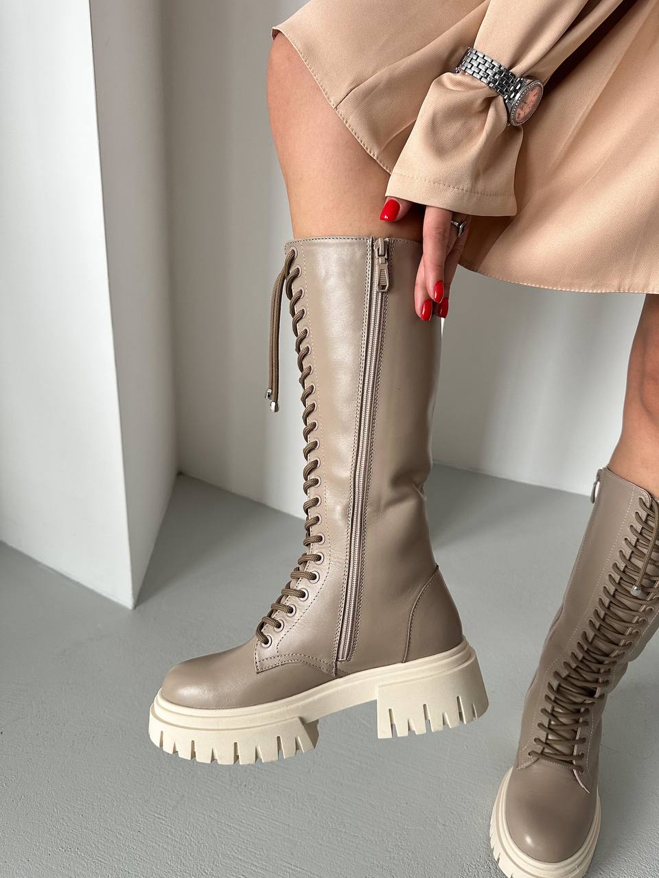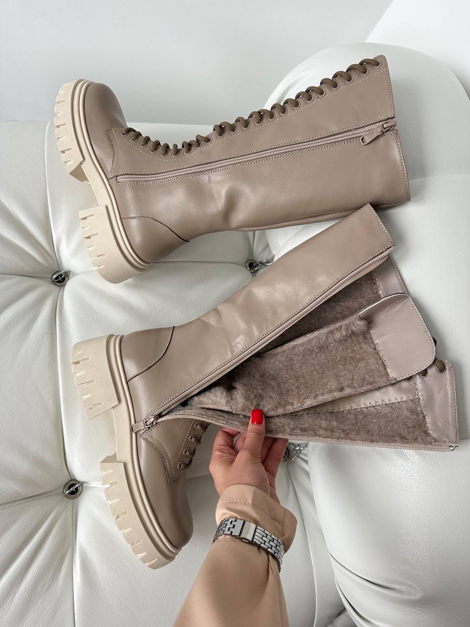 Жіночі Зимові Шкіряні Черевики Берці – Високі на Хутрі зі Шнурівкою