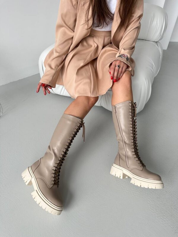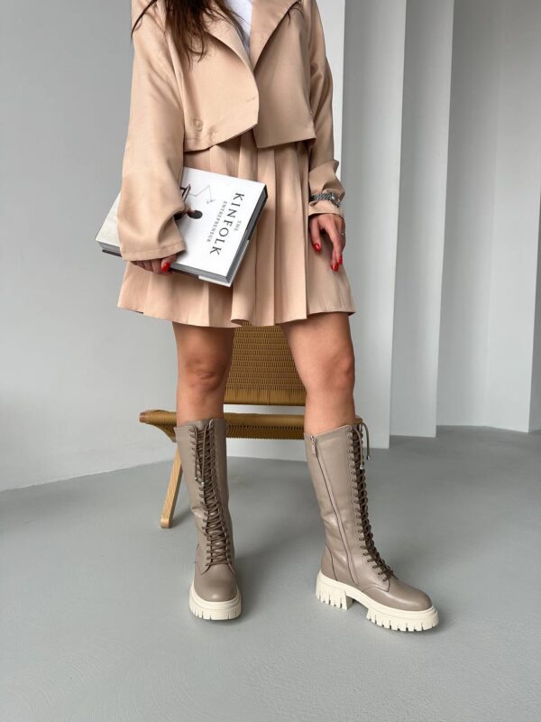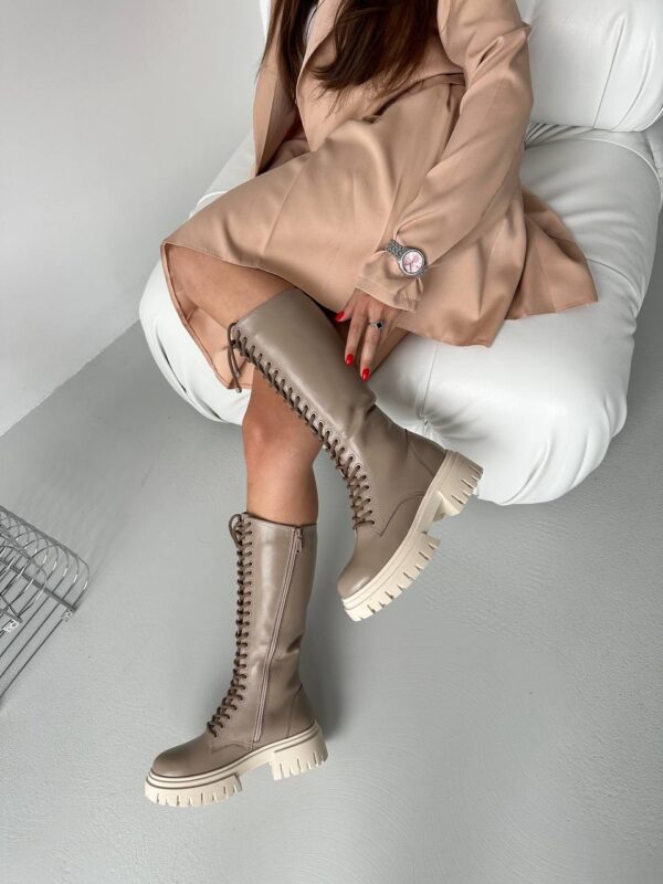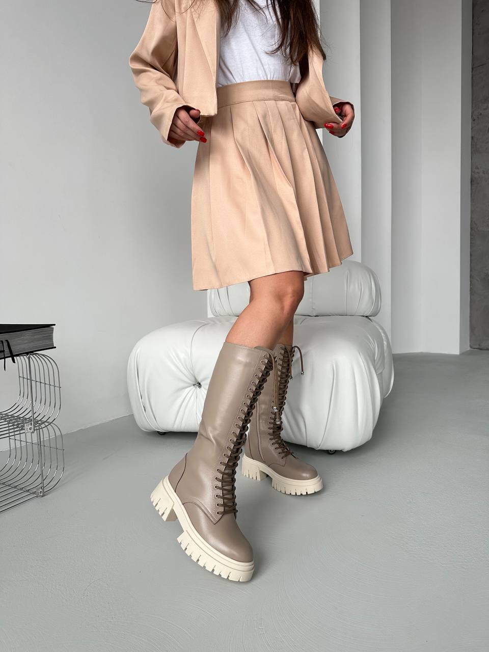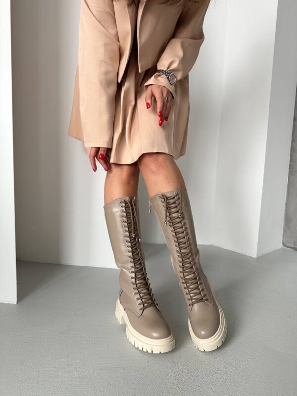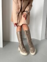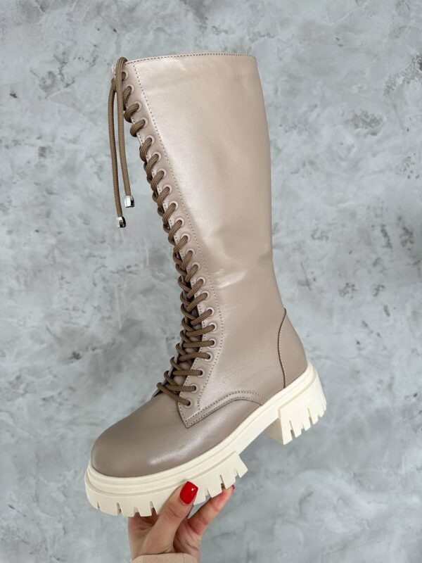 Жіночі Зимові Шкіряні Черевики Берці – Високі на Хутрі зі Шнурівкою