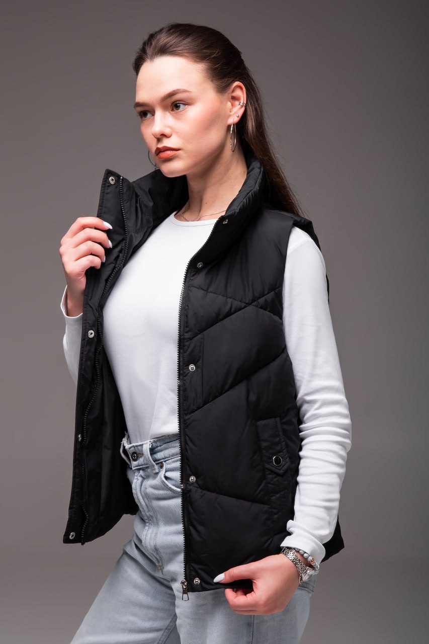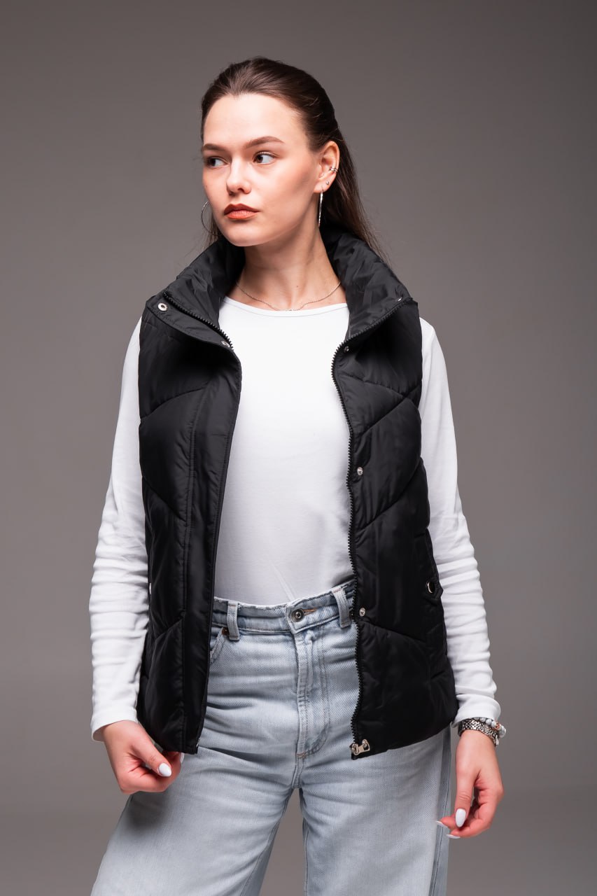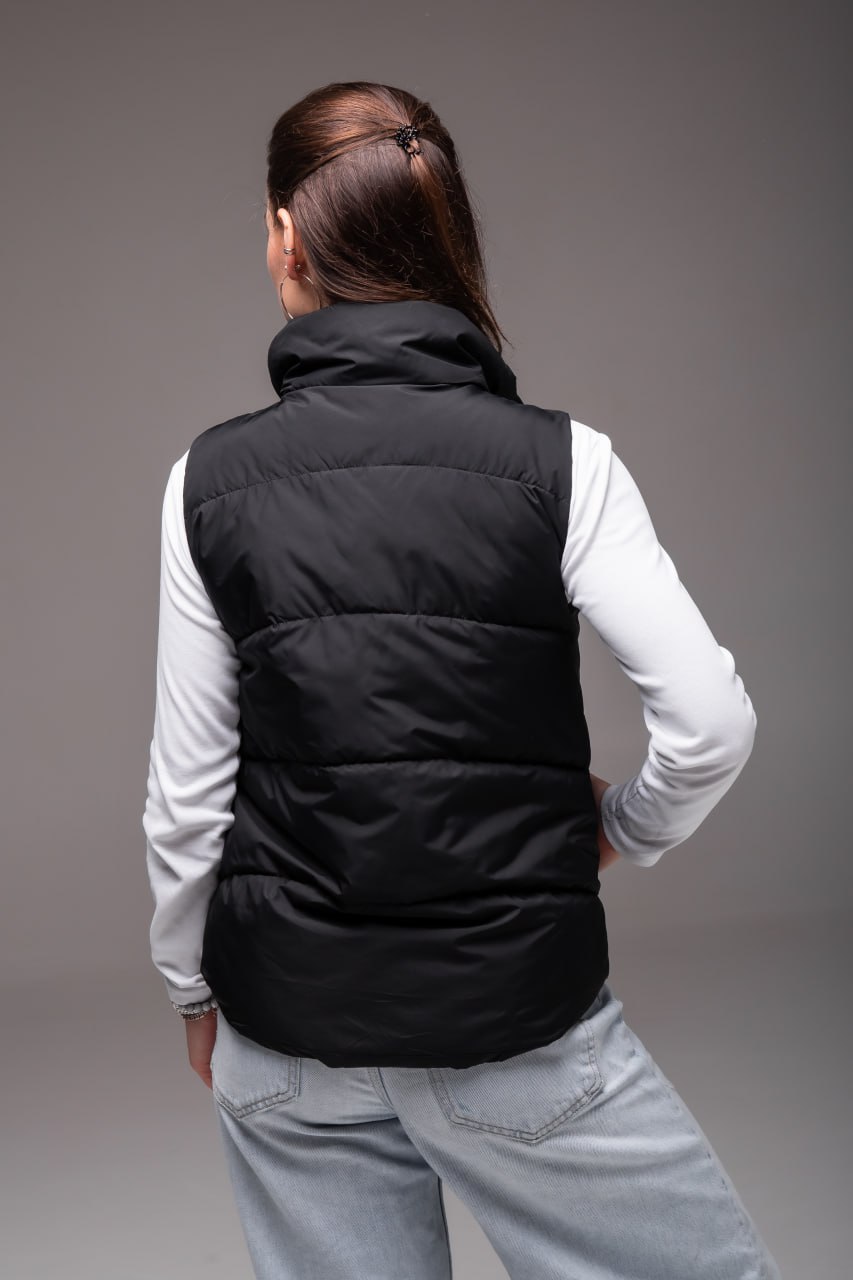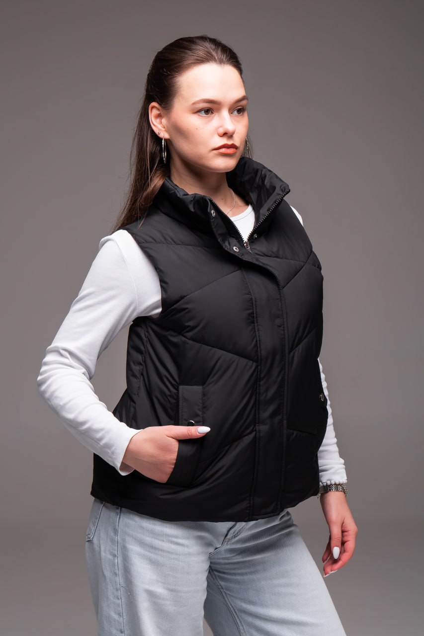Жіноча Чорна Жилетка Безрукавка – Стьобана з Високим Горлом