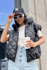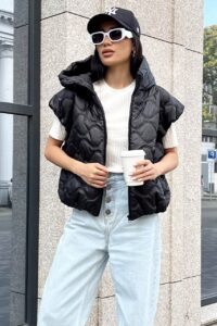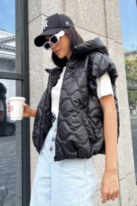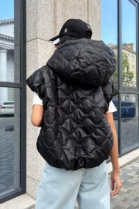 Будьте першим, хто залишив відгук “Жіноча Чорна Жилетка Ліфа – Укорочена Стегана Безрукавка з Об’ємним Капюшоном”“ Скасувати коментар