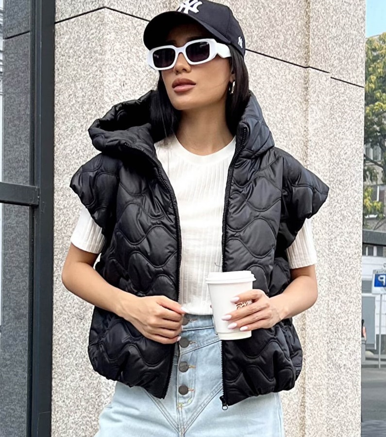 Будьте першим, хто залишив відгук “Жіноча Чорна Жилетка Ліфа – Укорочена Стегана Безрукавка з Об’ємним Капюшоном”“ Скасувати коментар