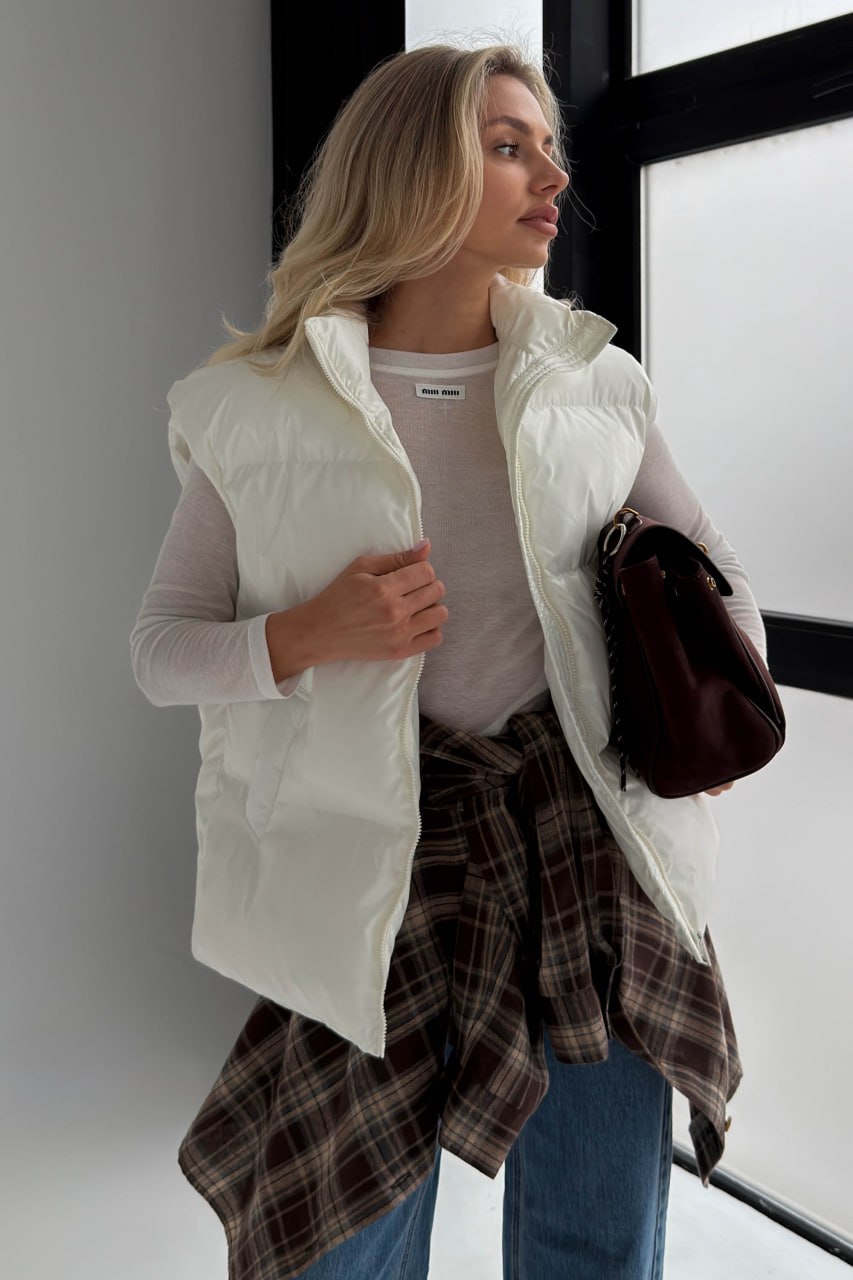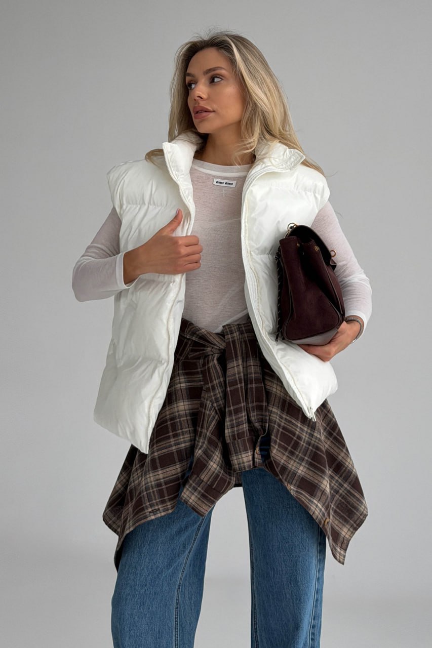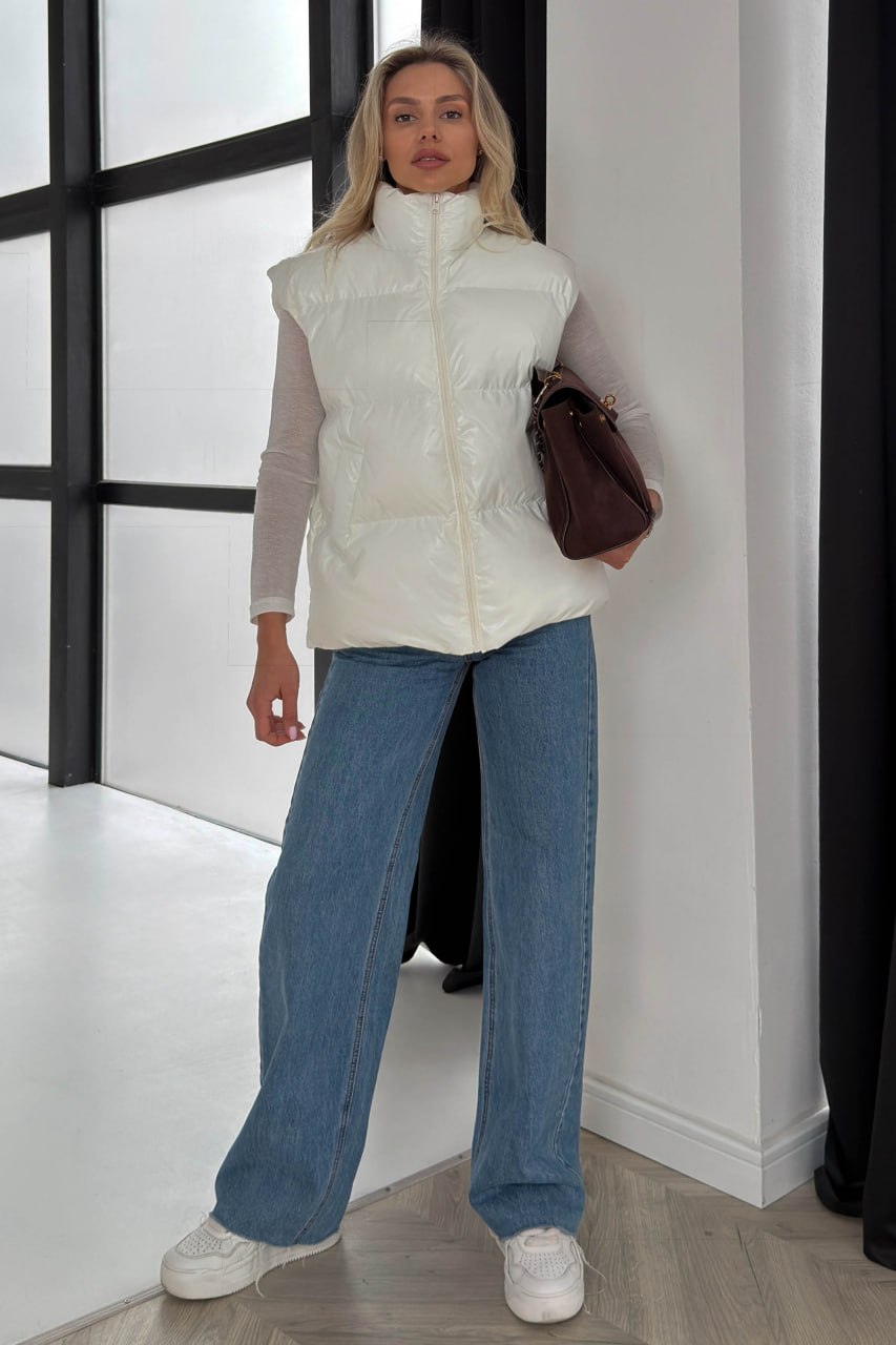Жіноча Глянсова Стьобана Біла Жилетка Айві Оверсайз з Високим Горлом Стійкою