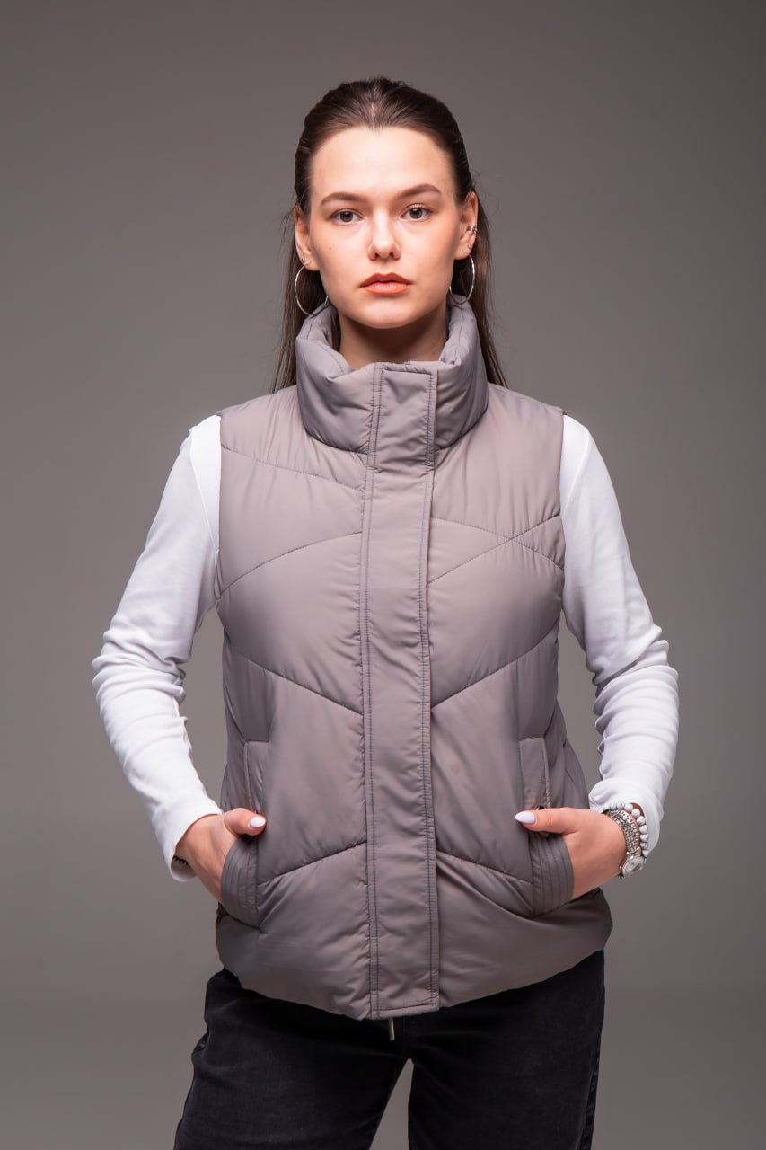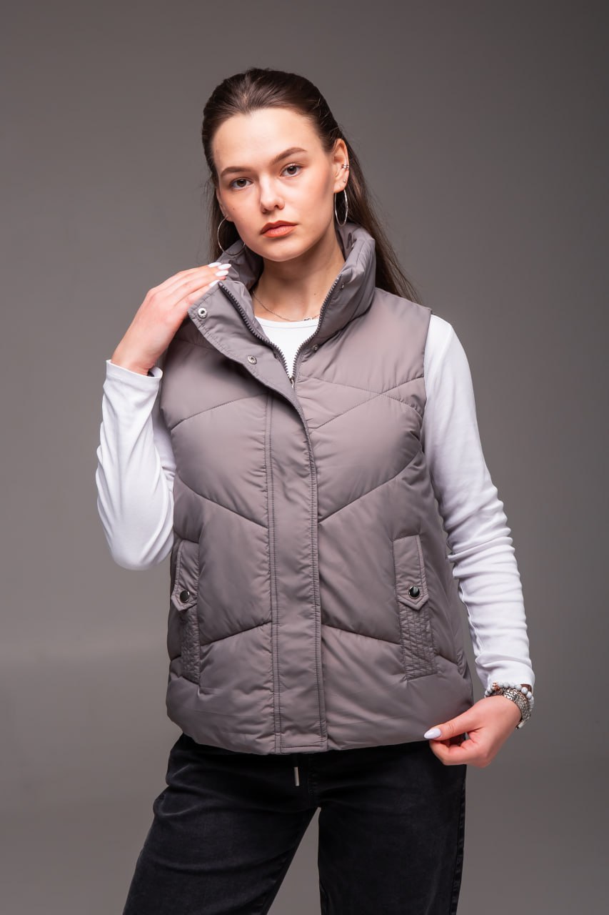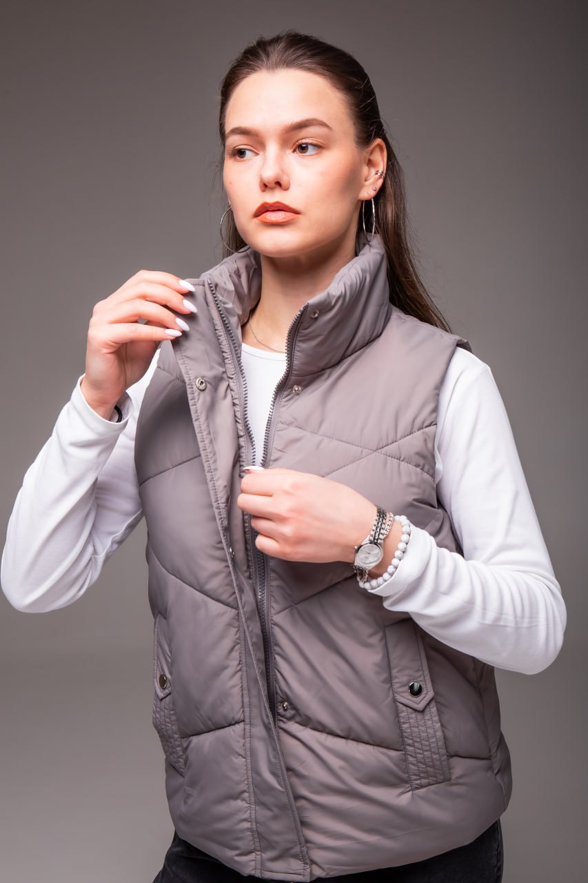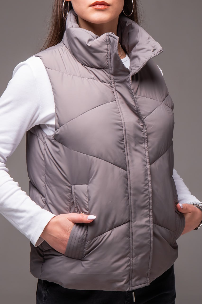 Жіноча Сіра Жилетка Безрукавка – Стьобана з Високим Горлом
