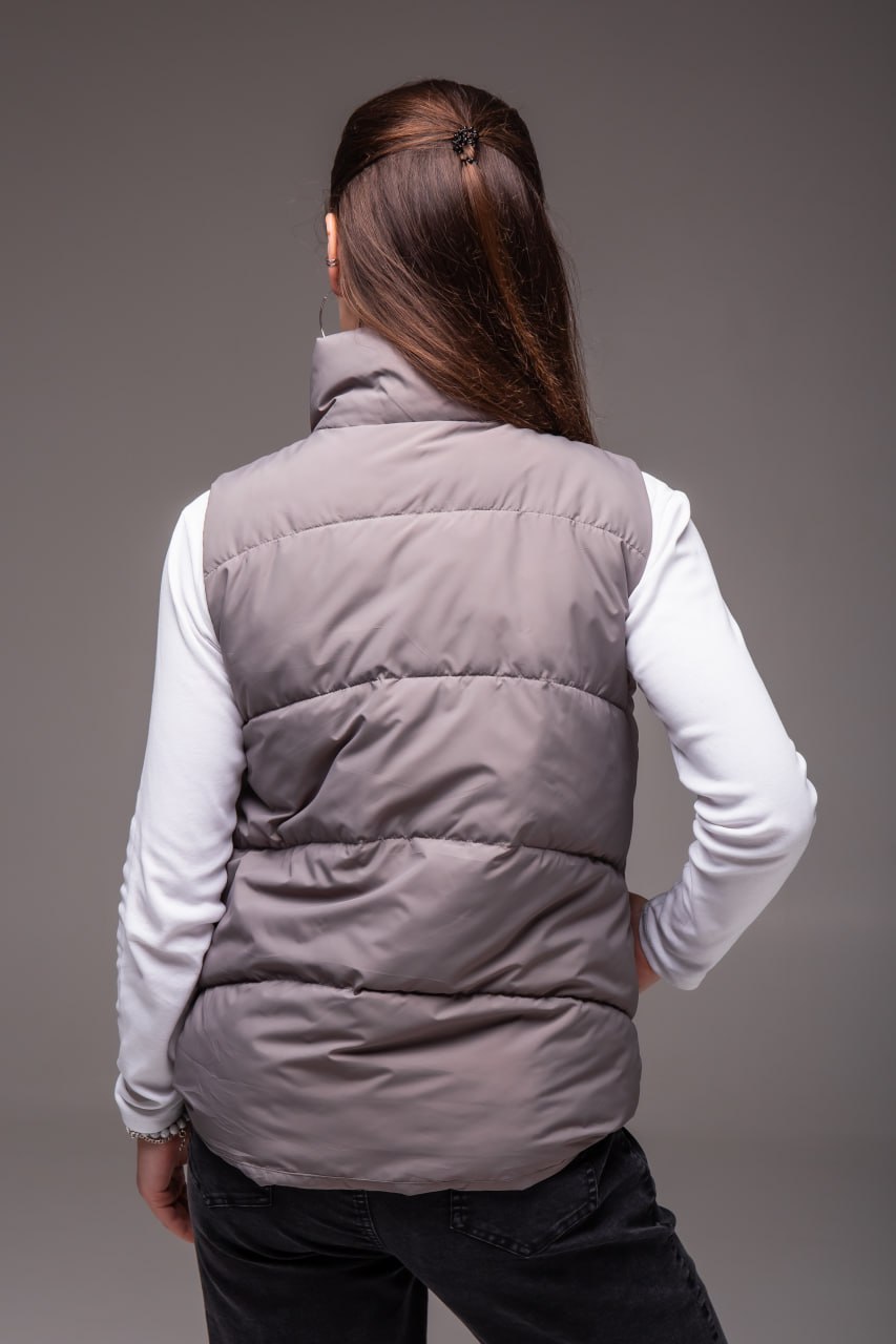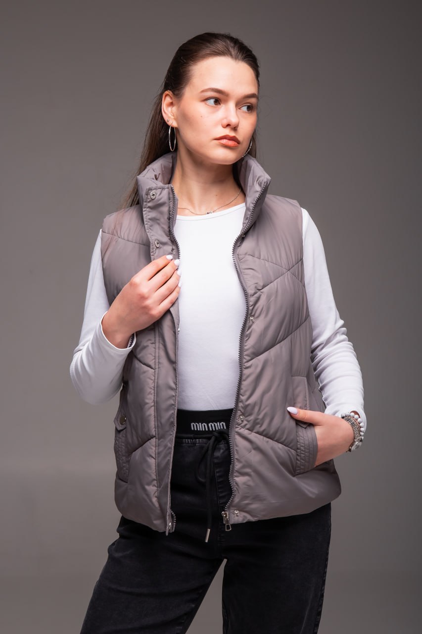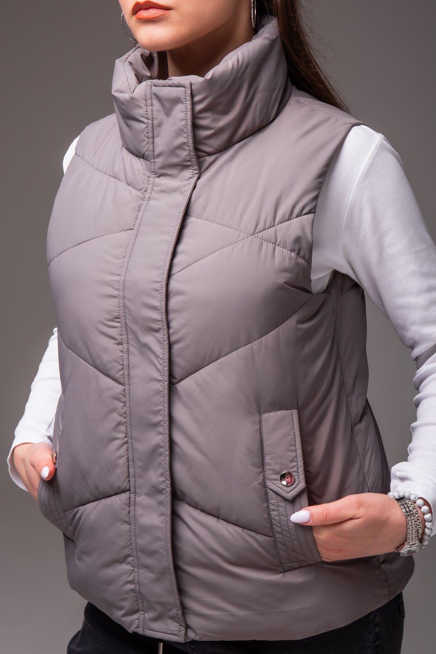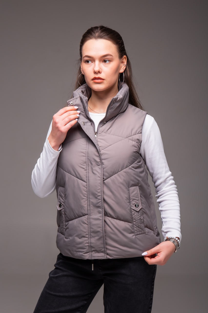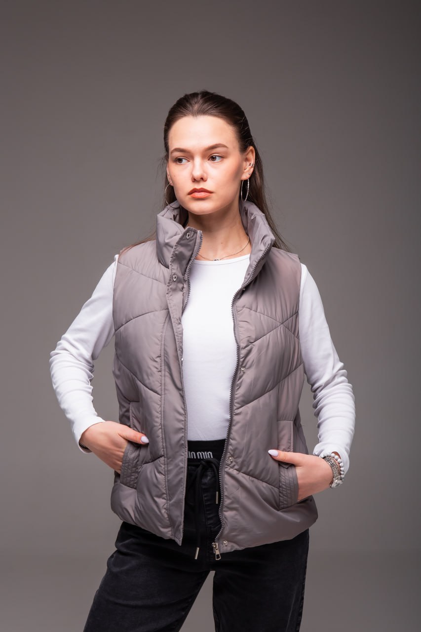 Жіноча Сіра Жилетка Безрукавка – Стьобана з Високим Горлом