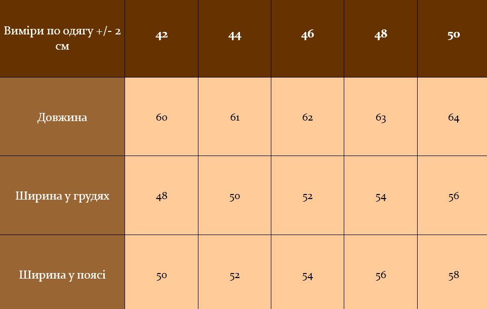 | Размер женской одежды | 42, 44, 46, 48, 50 |