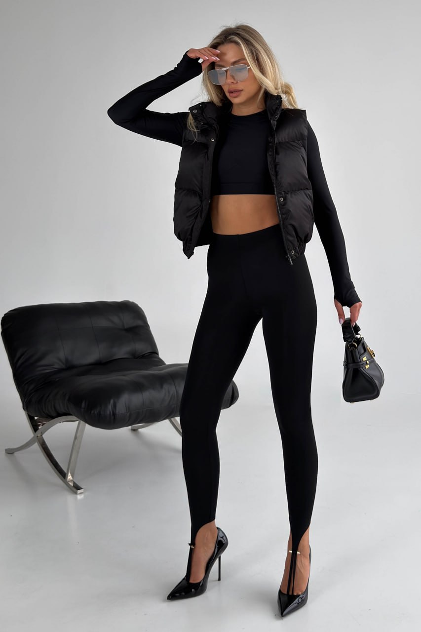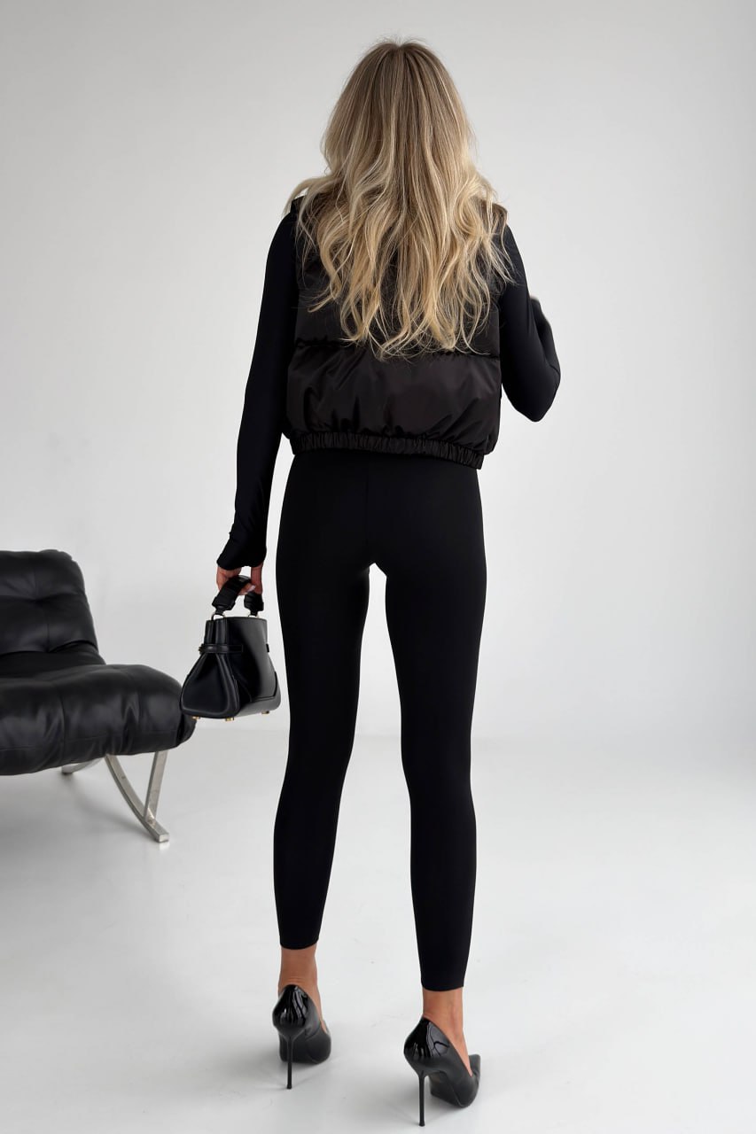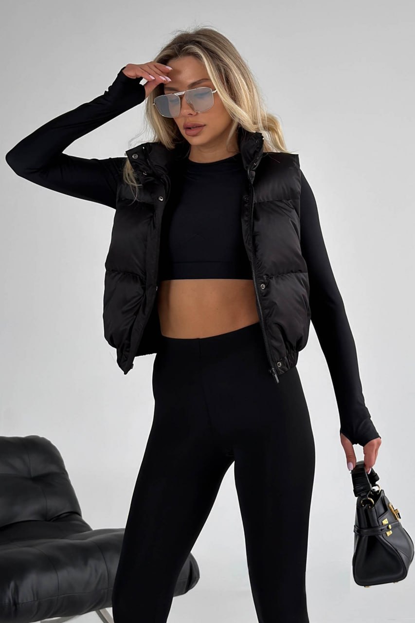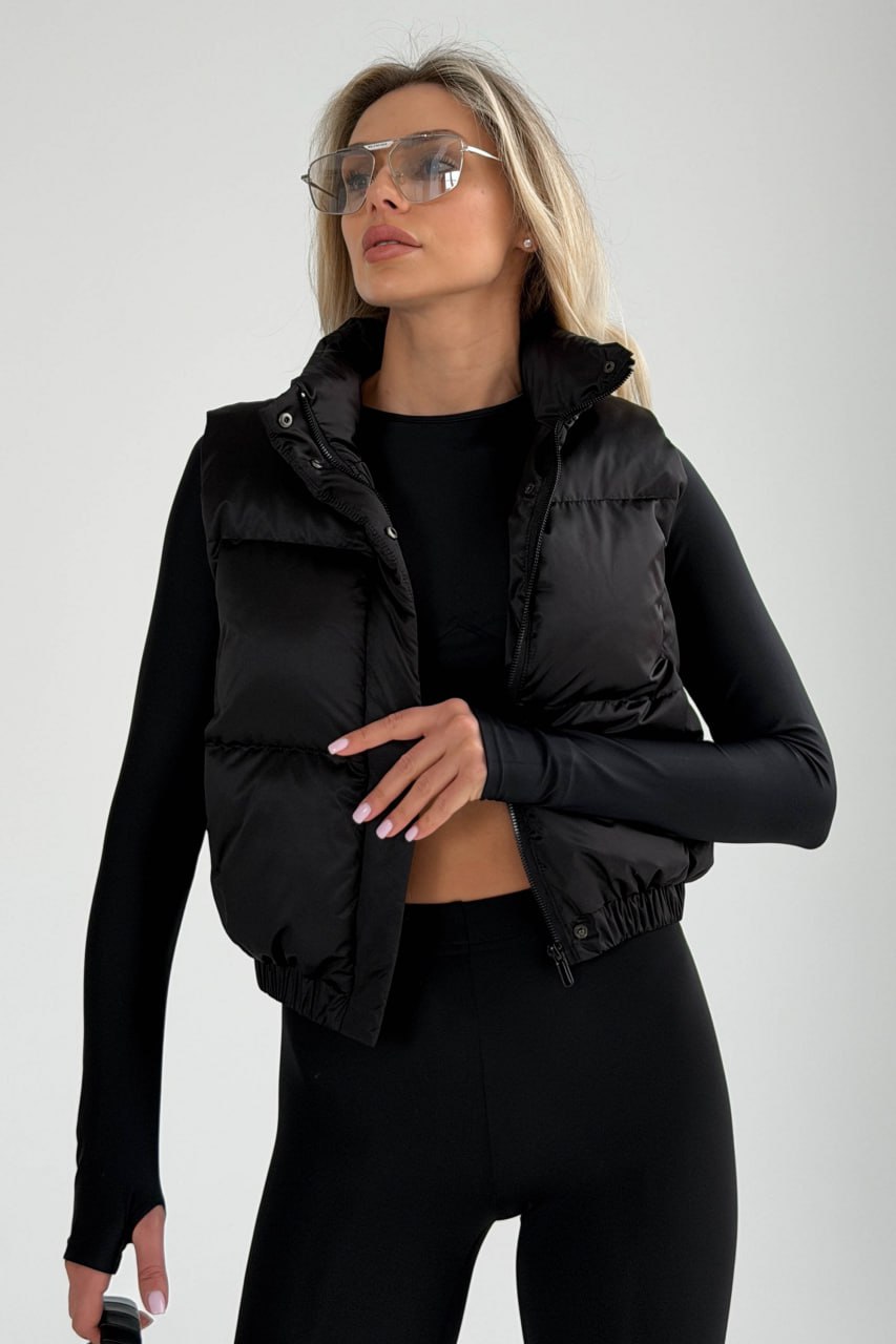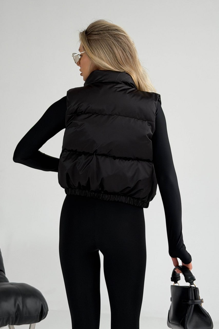 Жіноча Укорочена Чорна Жилетка Безрукавка Скай з Коміром Стійкою
