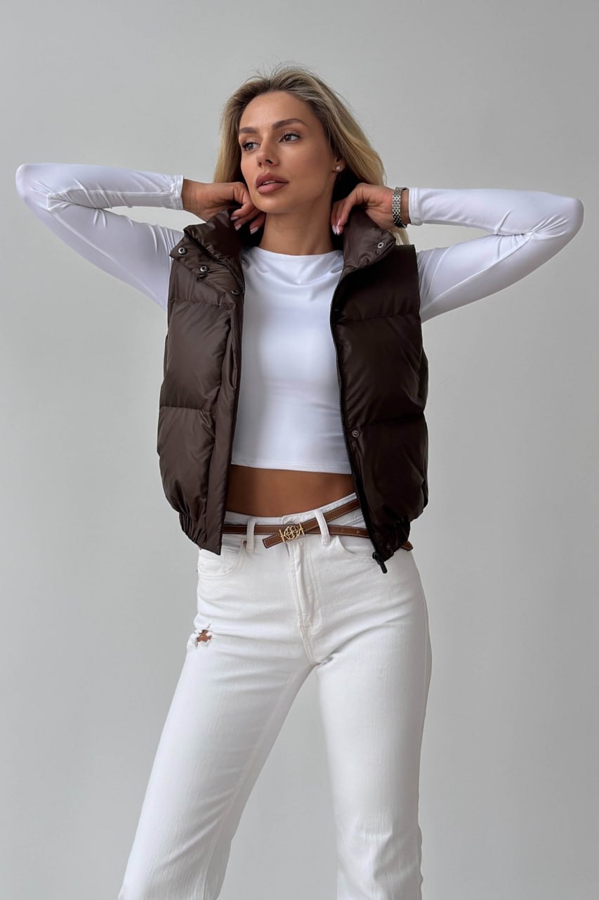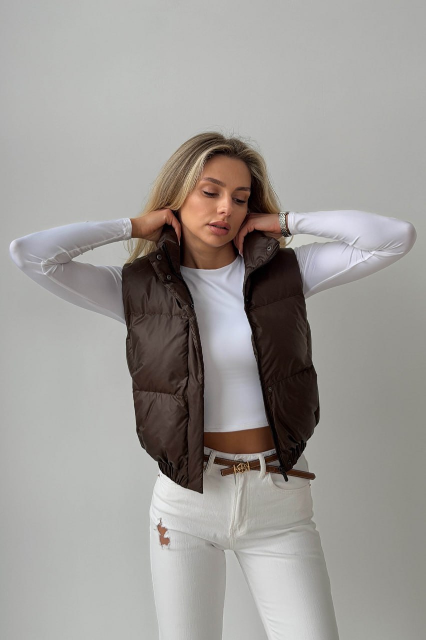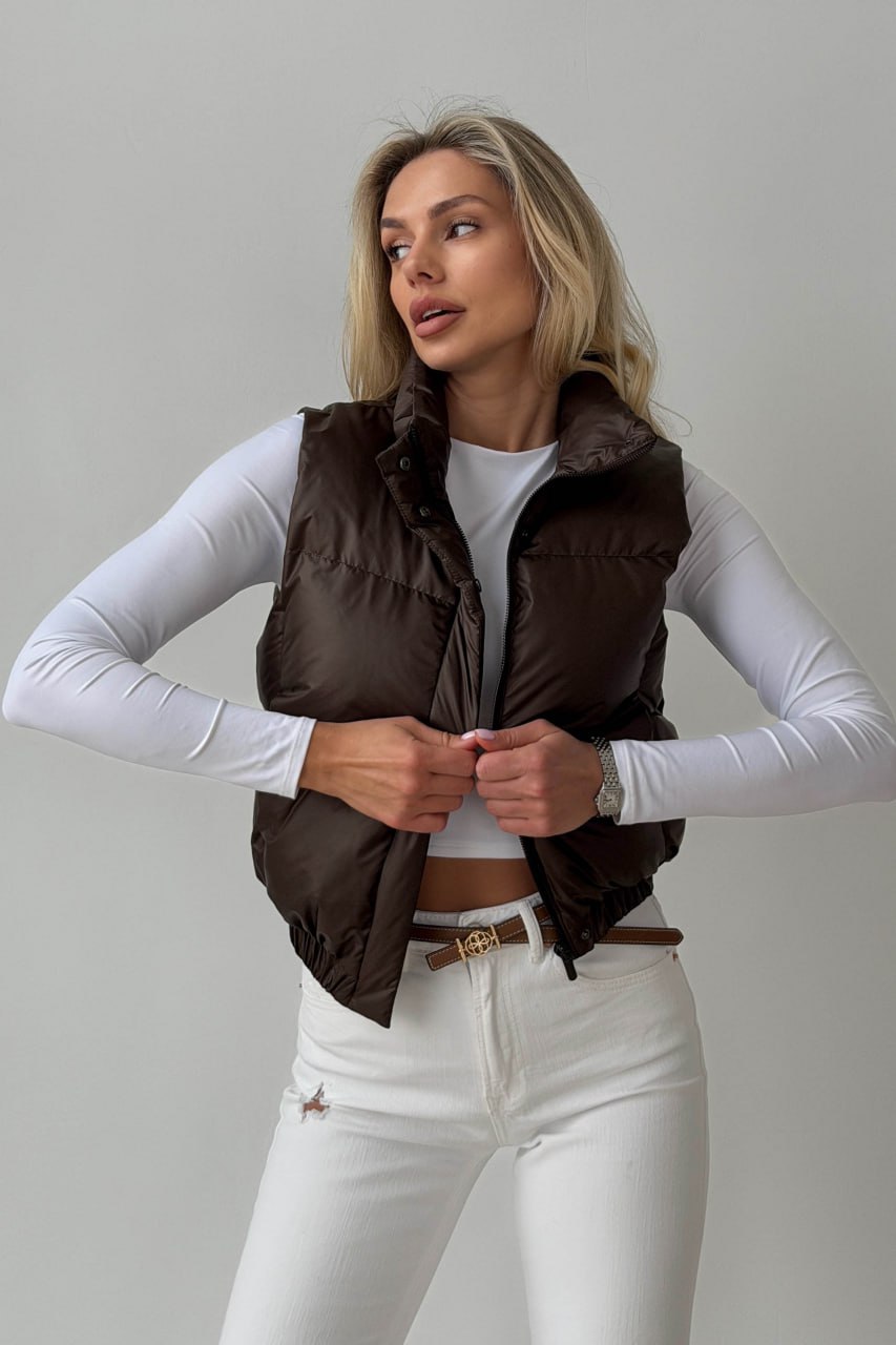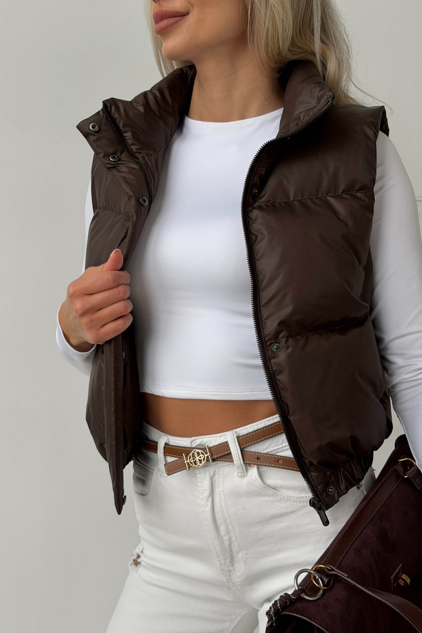 Жіноча Укорочена Коричнева Жилетка Безрукавка Скай з Коміром Стійкою