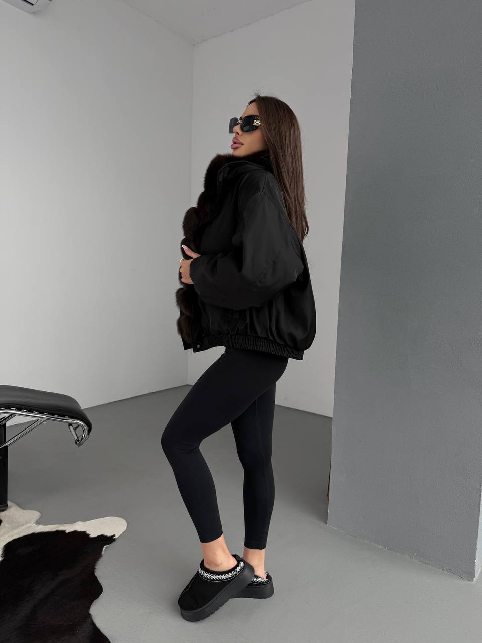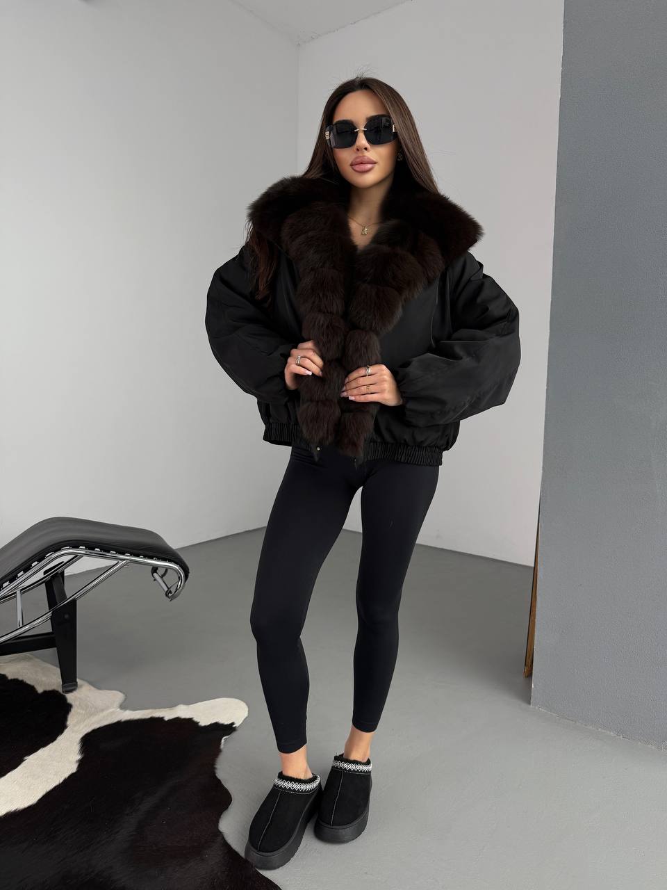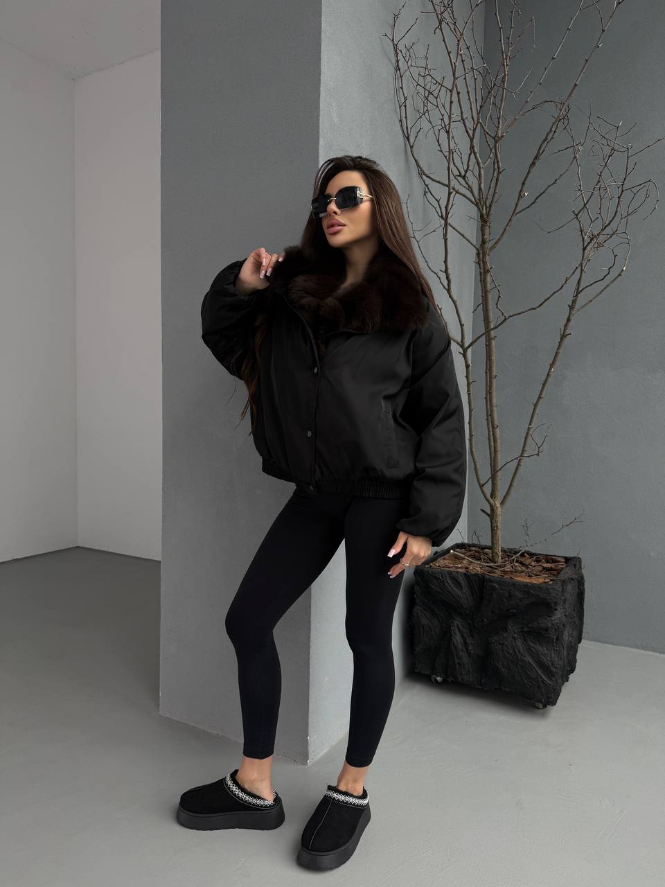 Жіноча Зимова Чорна Куртка з Натуральним Хутром