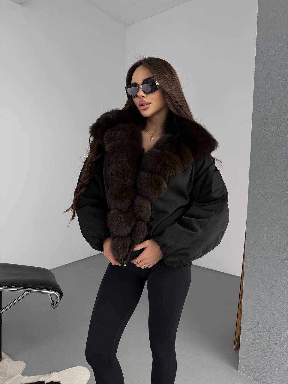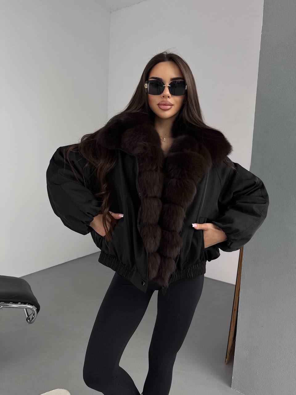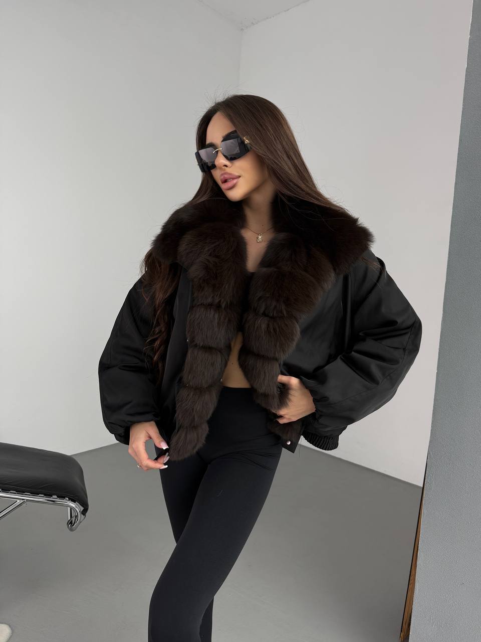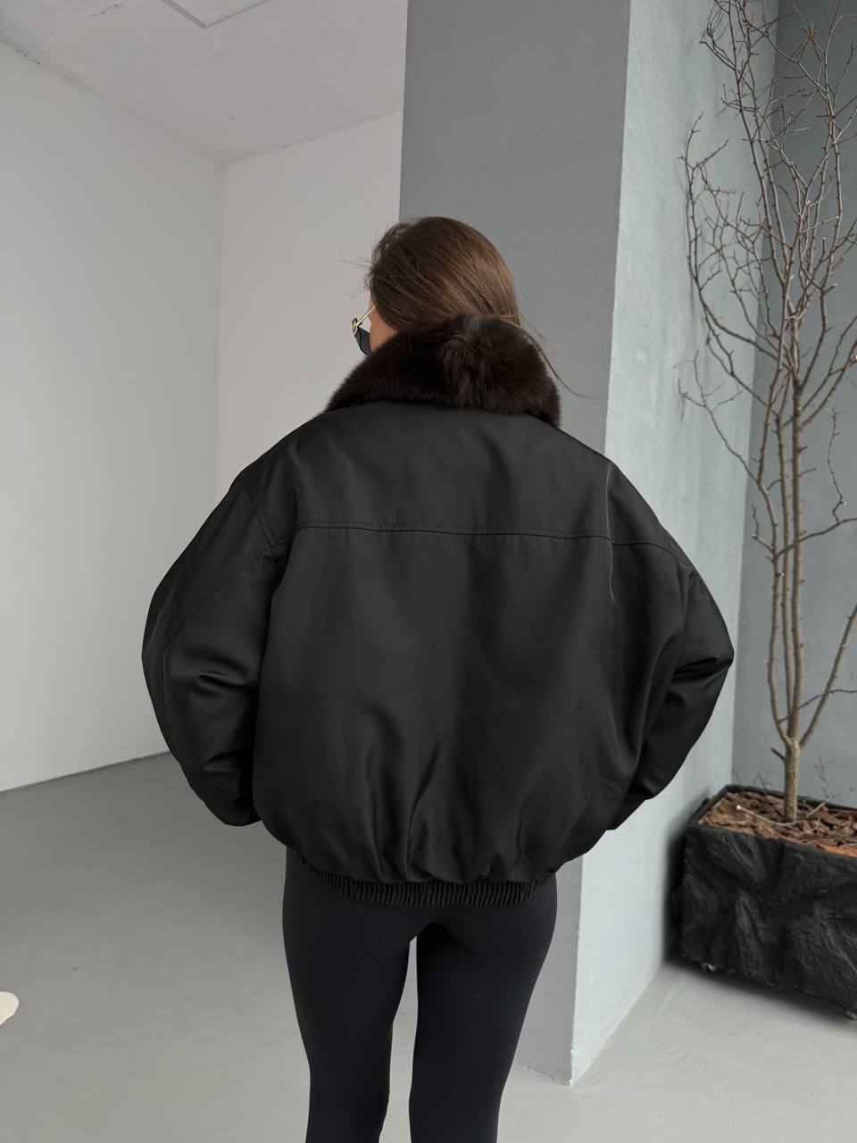 Жіноча Зимова Чорна Куртка з Натуральним Хутром
