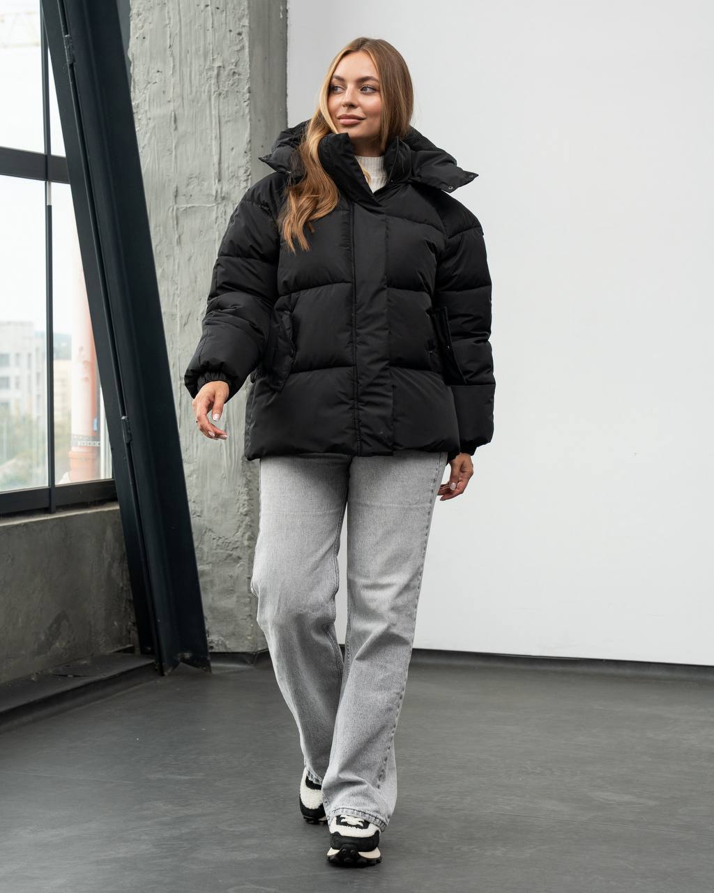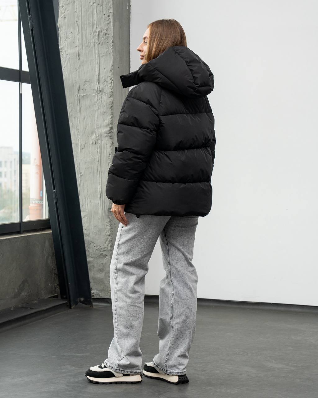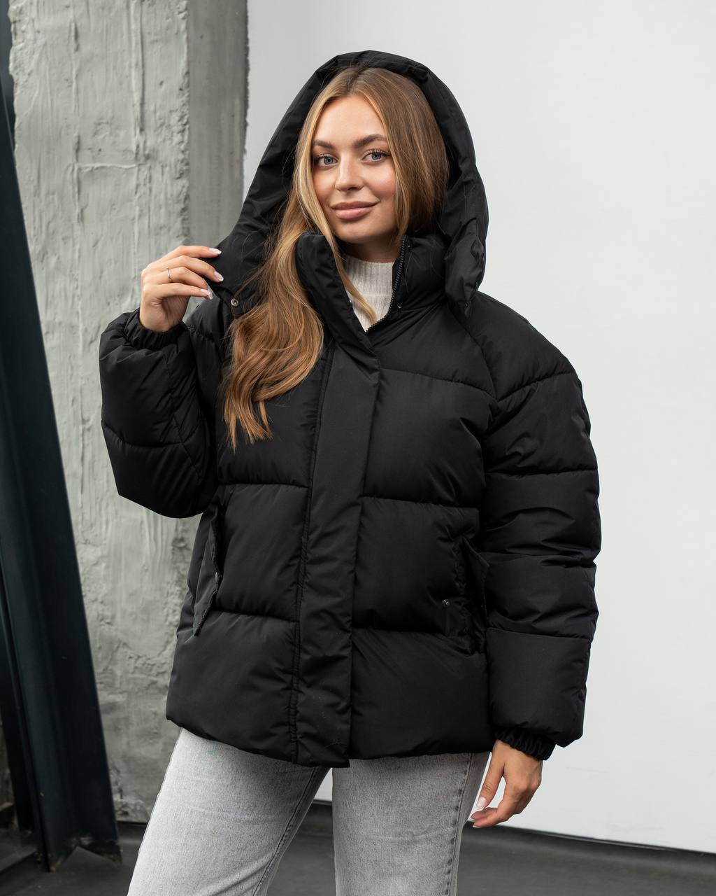 Жіноча Зимова Чорна Об’ємна Дута Куртка – Стьобаний Пуховик Дутік з Капюшоном