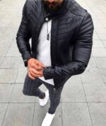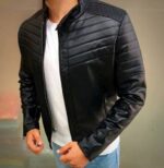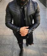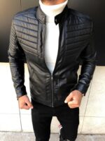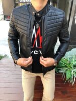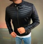 Чоловіча Чорна Шкіряна Куртка на Блискавці – Демісезонна Стеганна Шкіряна Приталеного Крою