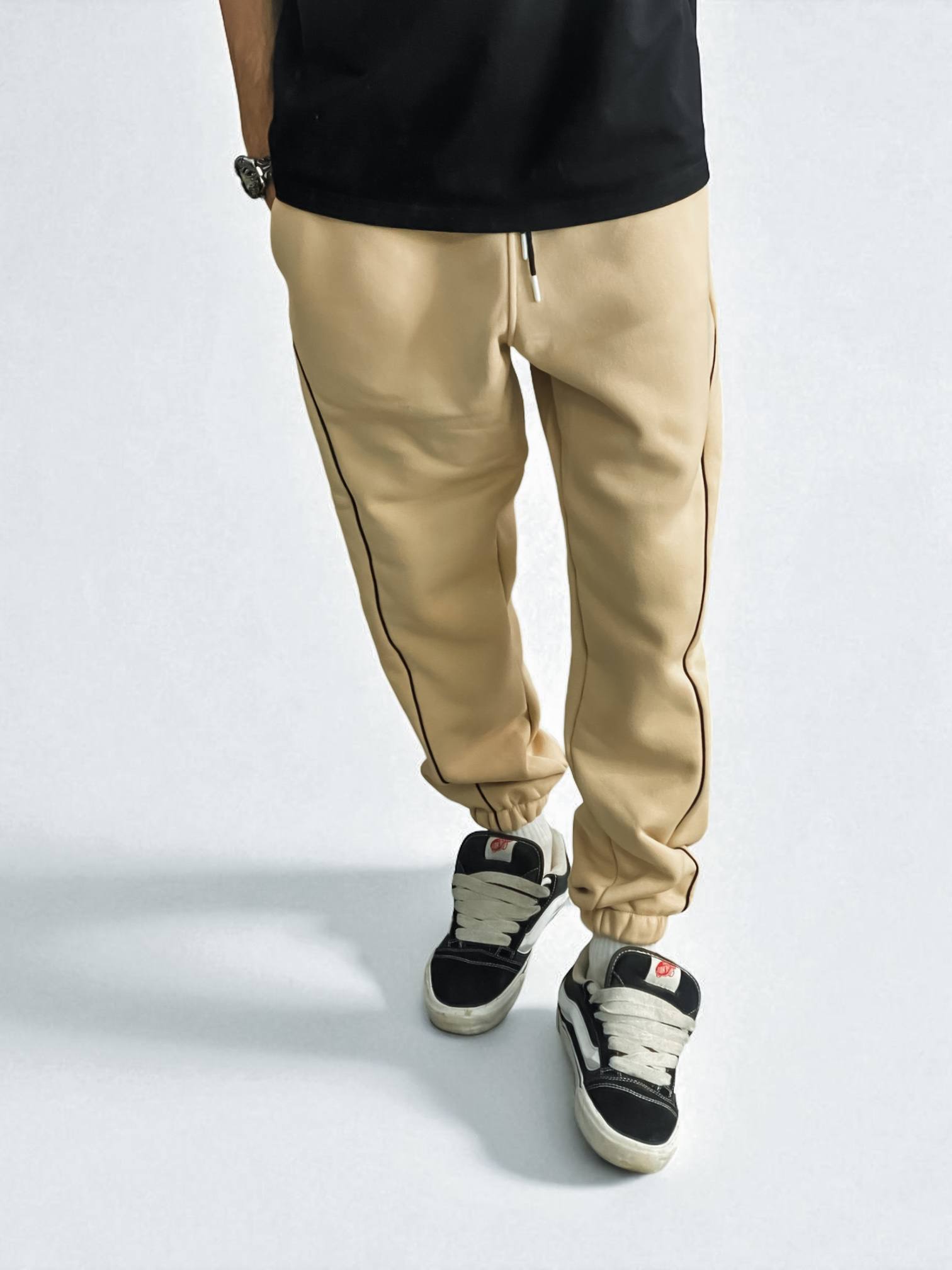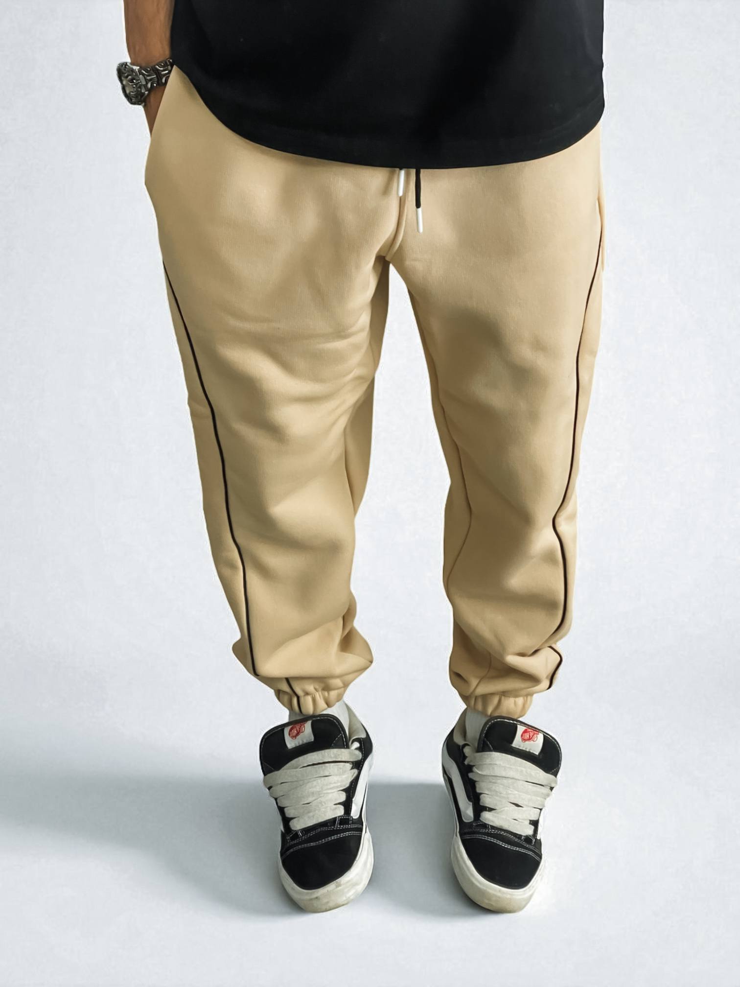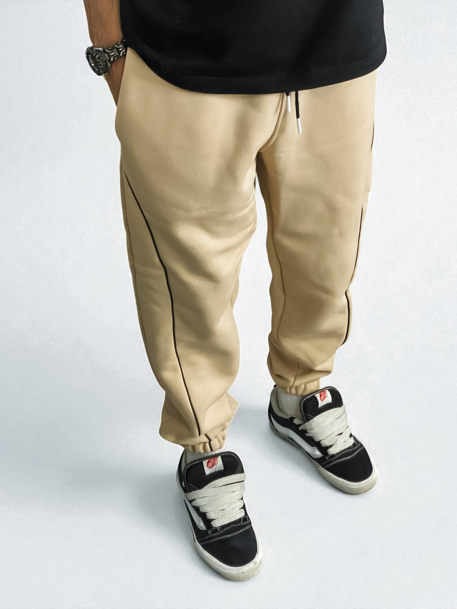 Чоловічі Бежеві Спортивні Штани Джоггери на Флісі з Манжетами та Кантом