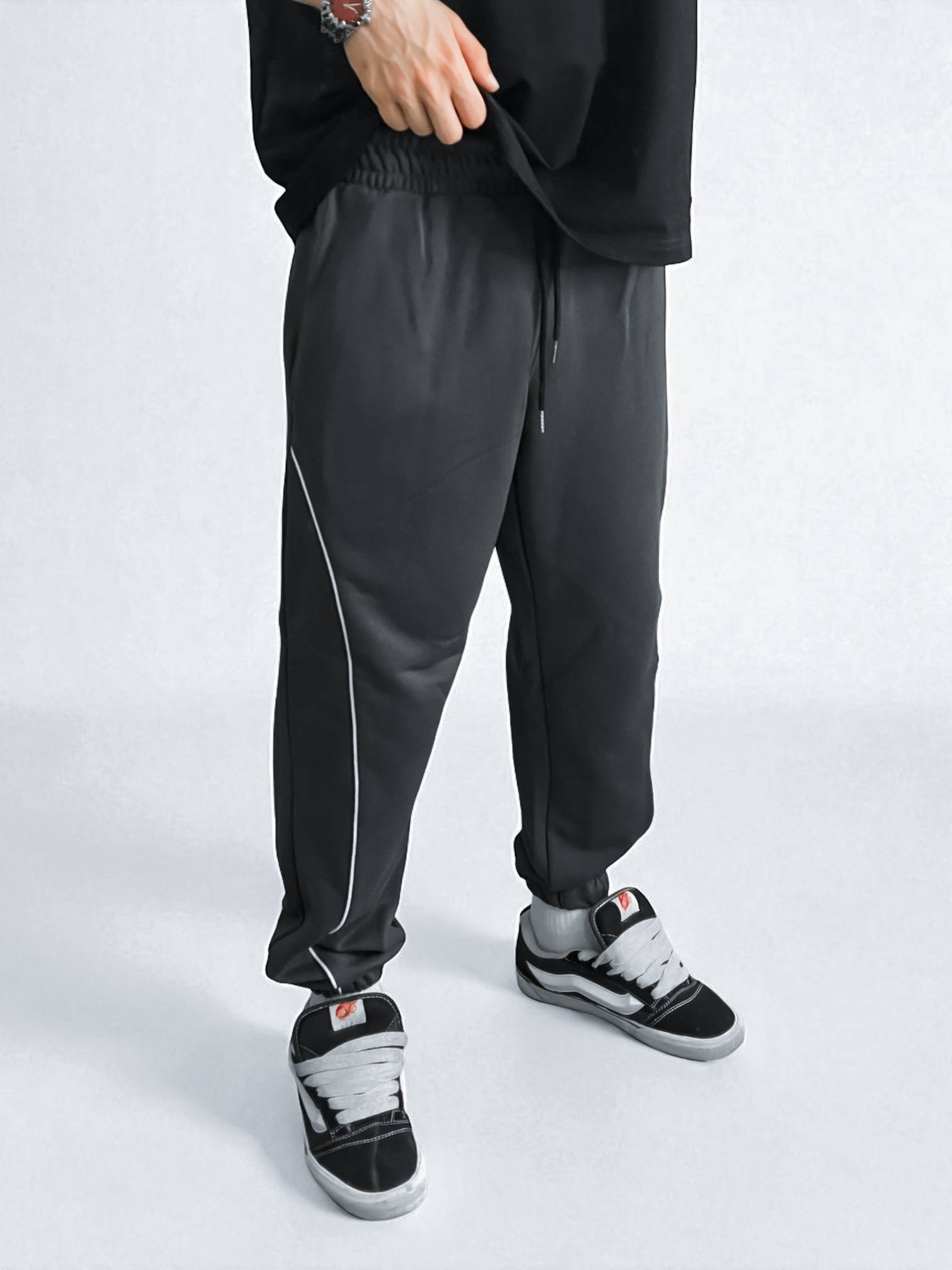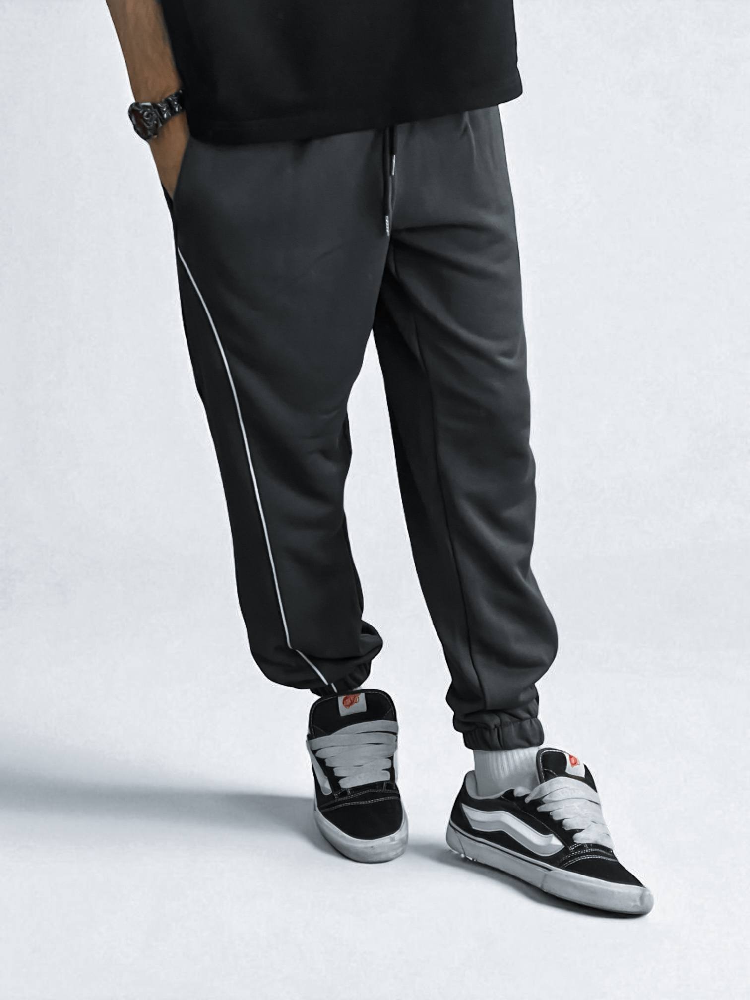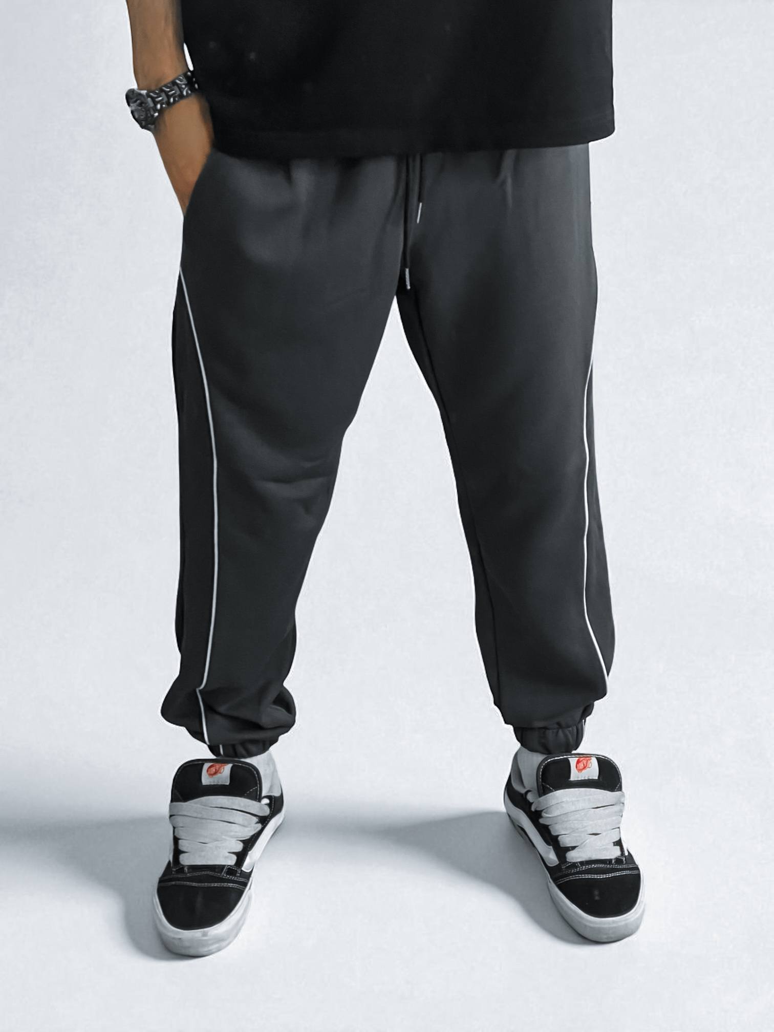 Чоловічі Графітові Спортивні Штани Джоггери на Флісі з Манжетами та Кантом