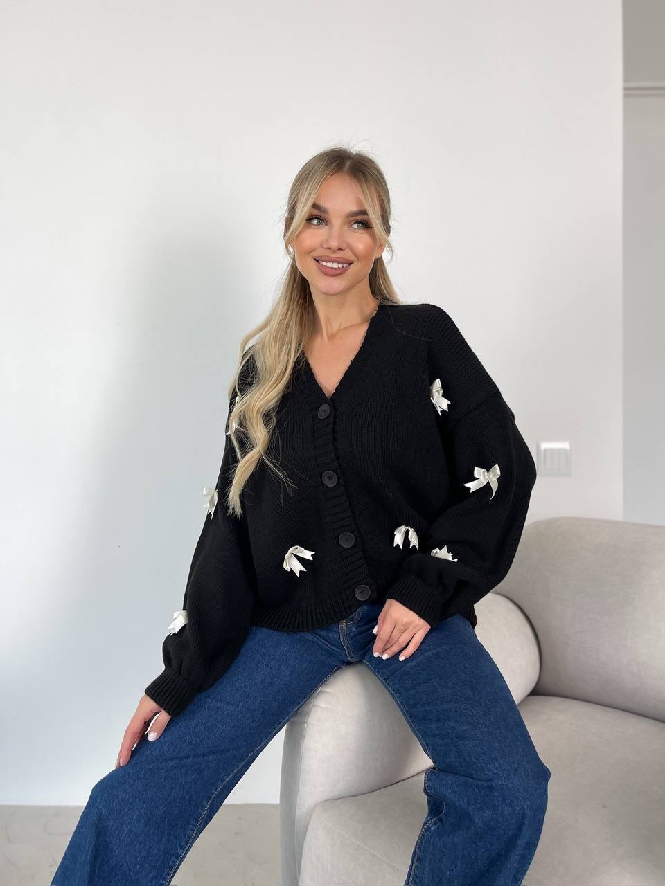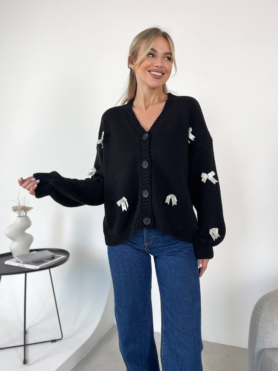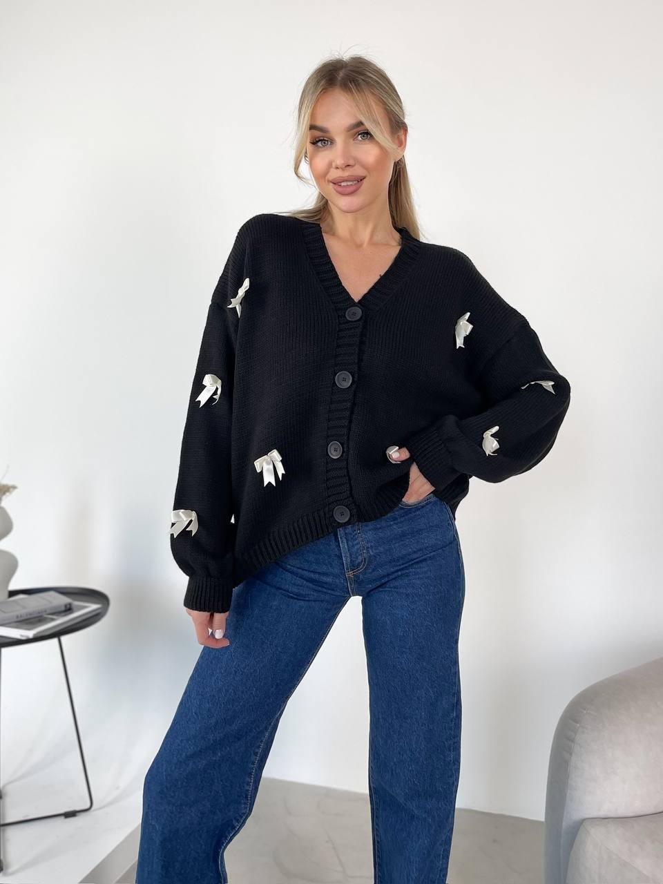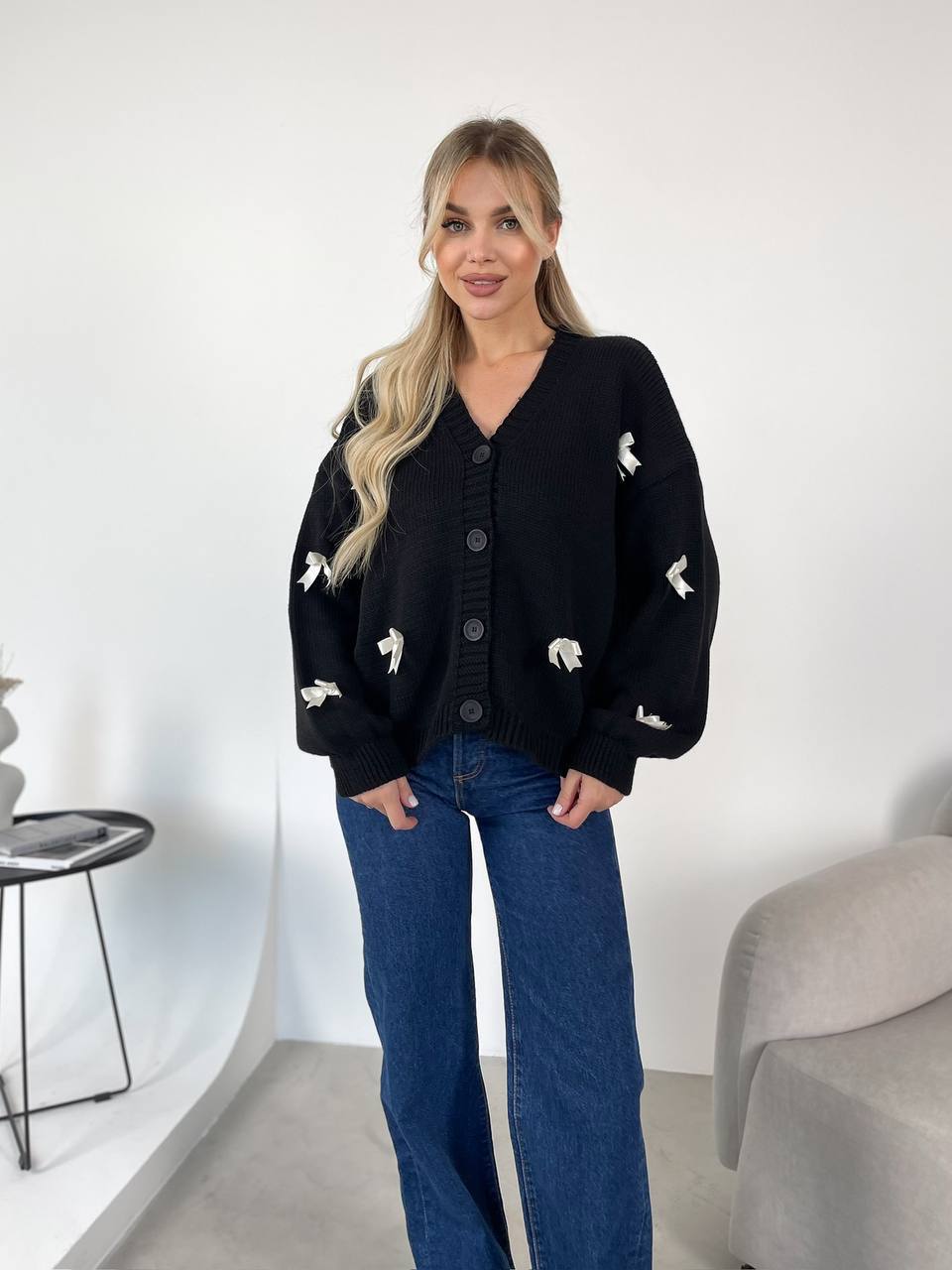 Жіночий Чорний Кардиган Вільного Крою з Білими Бантиками